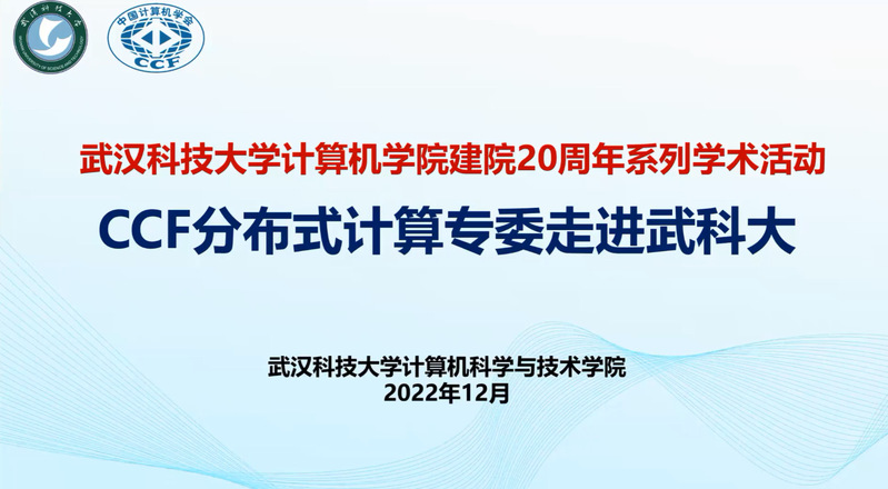 武科大网讯(通讯员李鹏)12月17日上午,由中国计算机学会(CCF)分布式计算与系统专业委员会和永利官网计算机科学与技术学院联合主办的“CCF分布式计算专委走进武科大学术报告会”在线上成功举行,学院共200多名师生参加了此次学术报告会。报告会邀请香港城市大学贾小华教授、南京大学徐宝文教授及武汉大学姬东鸿教授做学术报告,计算机科学与技术学院顾进广教授,李鹏教授主持了本次活动。此次活动也是庆祝304am永利集团官网计算机科学与技术学院建院20周年的学术活动之一。