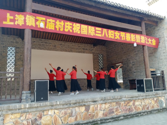 表彰大会结束后,石庙村广场舞蹈队载歌载舞,迎接节日的到来。驻村工作队第一书记杨永彬亲自上场,主持踢毽、跳绳、转呼啦圈、抢凳子和拔河比赛等活动。丰富多彩的活动和丰盛的奖品让前来参加活动的姐妹乐欢了天。驻村工作队为她们定制了专属节日礼物。(驻村工作队)