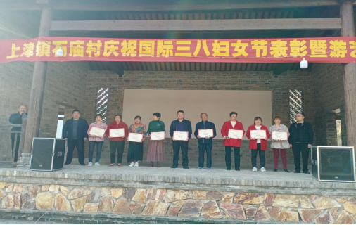 武科大网训 3月8日,国际“三八”妇女节来临之际,郧西县上津镇石庙村“最美婆媳、最美家庭、最美庭院、石庙好人”表彰活动在村文体广场举行,经过群众道德评议会推荐评选出来的24位(户)“最美婆媳、最美家庭、最美庭院、石庙好人”,手捧荣誉证书,佩戴绶带,依次走上舞台,接受表彰,喜悦自豪之情溢于言表。