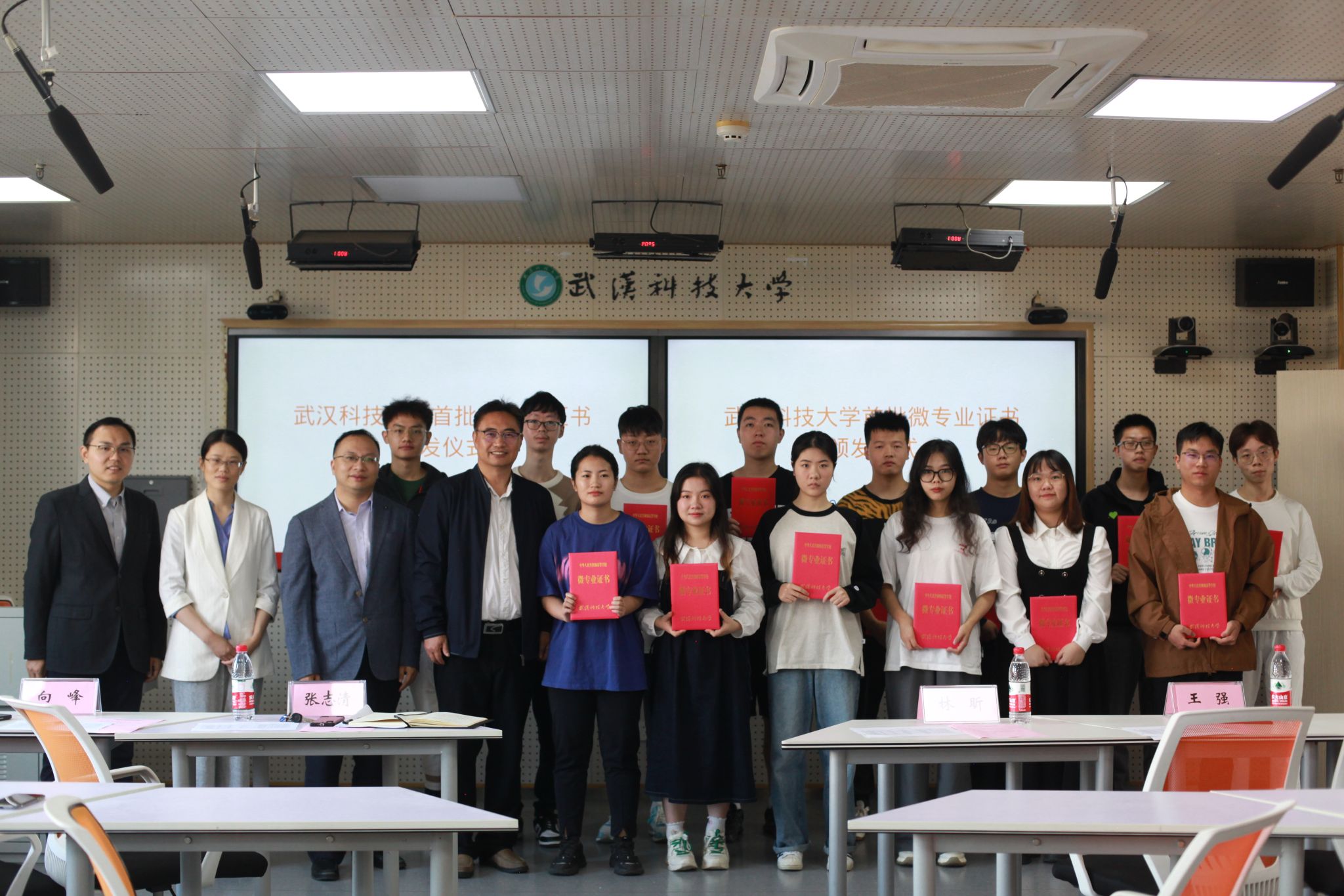 武科大网讯(通讯员朱雅慧 摄影刘靖瑶)11月1日上午,永利官网在青山校区主楼0810会议室举行首批微专业证书颁发仪式。本科生院副院长、香涛学院院长张志清,本科生院副院长向峰,增材制造工程微专业项目负责人林昕、数字材料与冶金项目负责人王强出席仪式,微专业项目学生代表参加。仪式由向峰主持。
