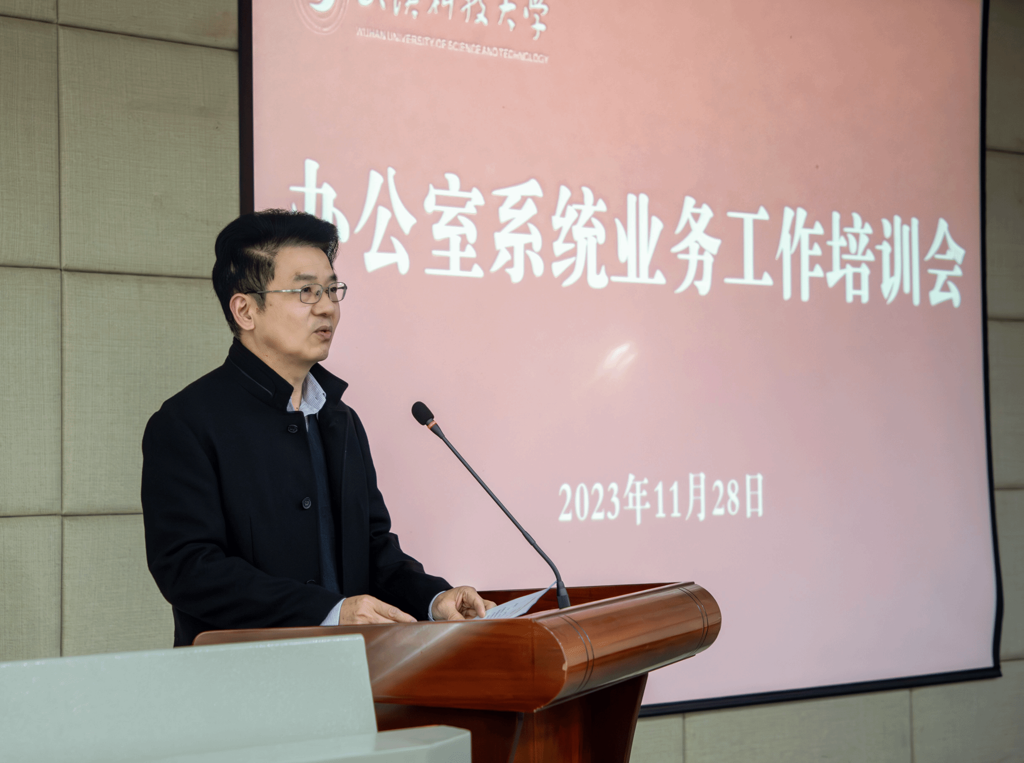 武科大网讯 11月28日下午,学校办公室系统业务工作培训会在青山校区0212教室举行。学校党委副书记盛建龙出席并讲话,省政府办公厅秘书六处处长李建镇作专题辅导。会议由党政办公室主任傅江浩主持。