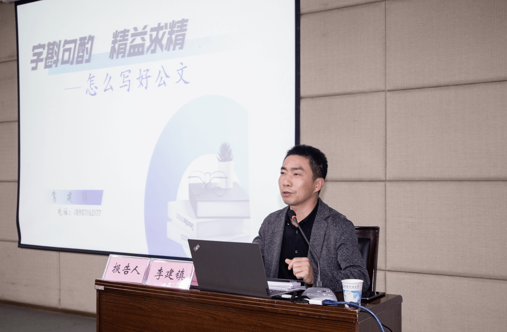 李建镇作了题为《公文写作规范与处理技巧》的专题辅导。他结合个人丰富的写作经历,运用生动的事实案例,以《党政机关公文处理工作条例》主要内容作为切入点,对公文种类、公文格式、行文规则、公文拟制、公文办理等方面进行了系统讲解,内容细致全面,深入浅出,对提高文字材料水平和公文办理能力具有重要意义。