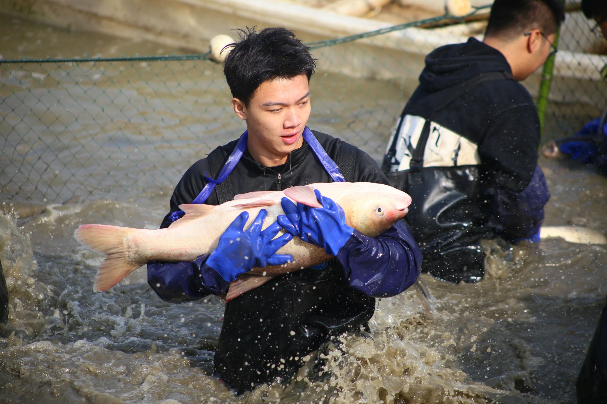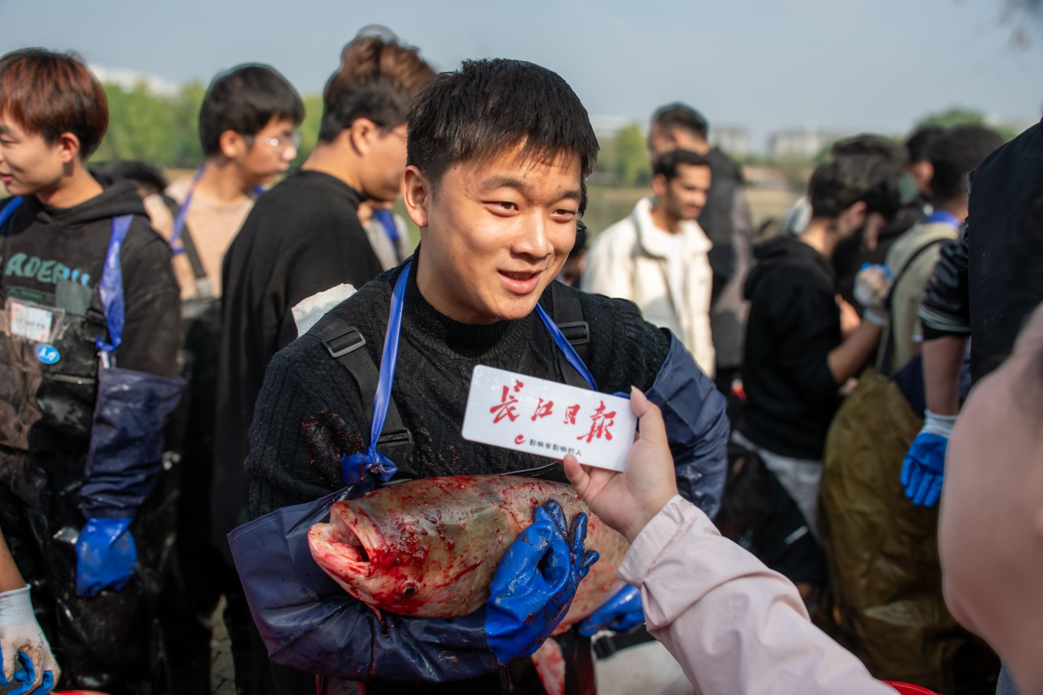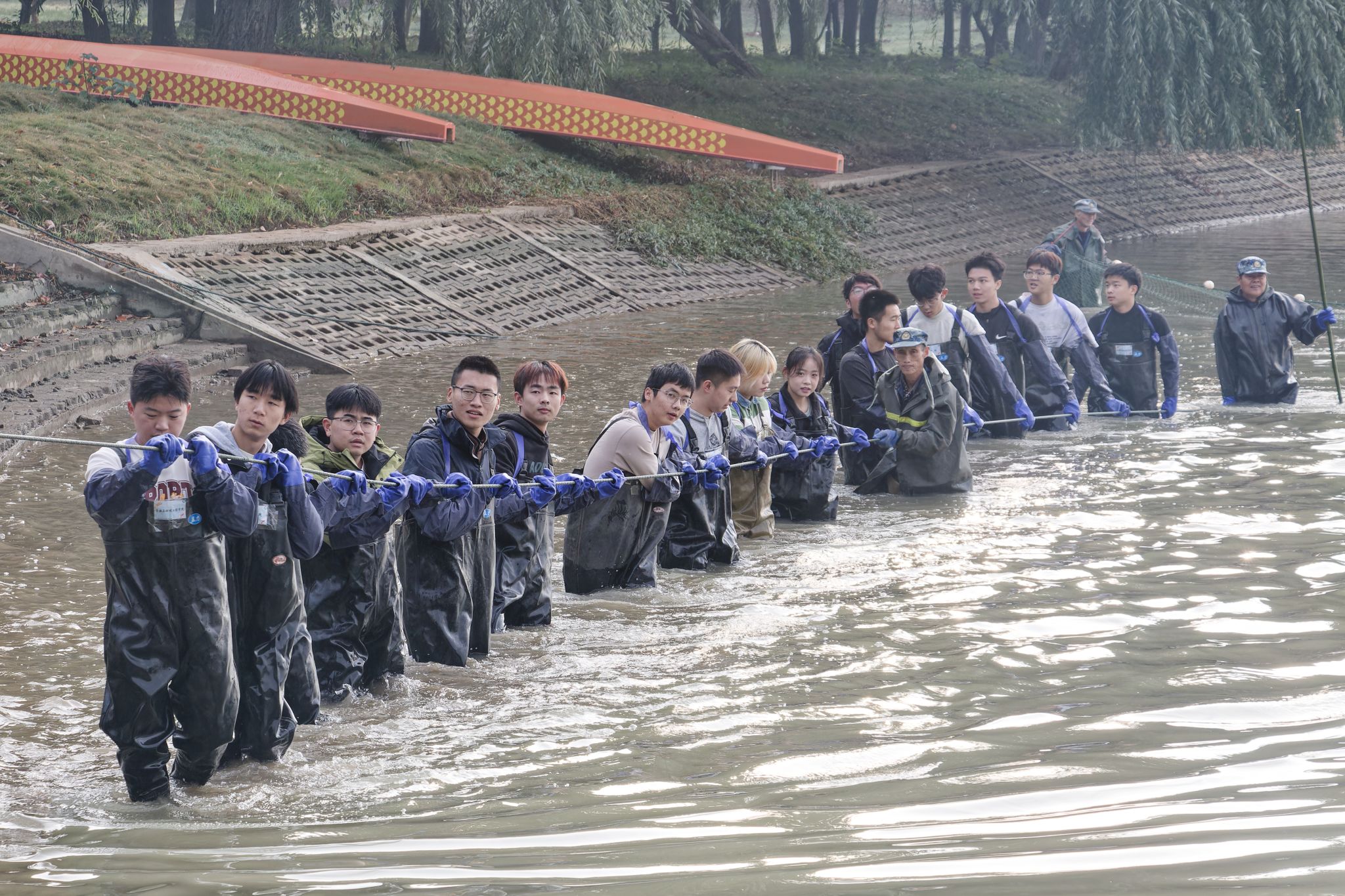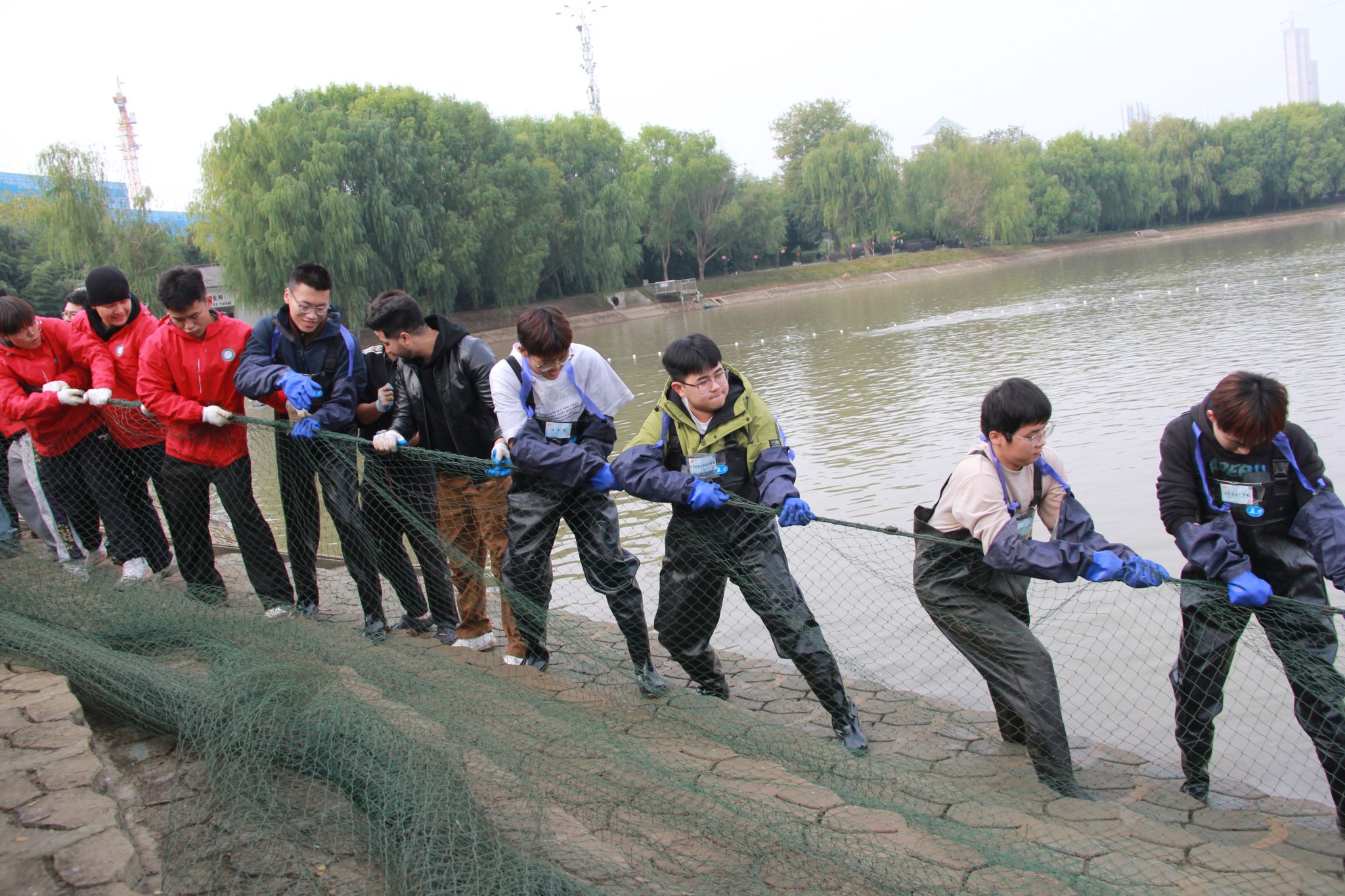 11月21日上午8时,学校近百名中外师生和后勤集团员工身着统一的红色服装,在沁湖边拉开了捕鱼活动的序幕。经过半个多小时的激烈争夺,信息学院徐润收获了一条20.5斤重的大鱼,获得了今年的“捕鱼王”称号。