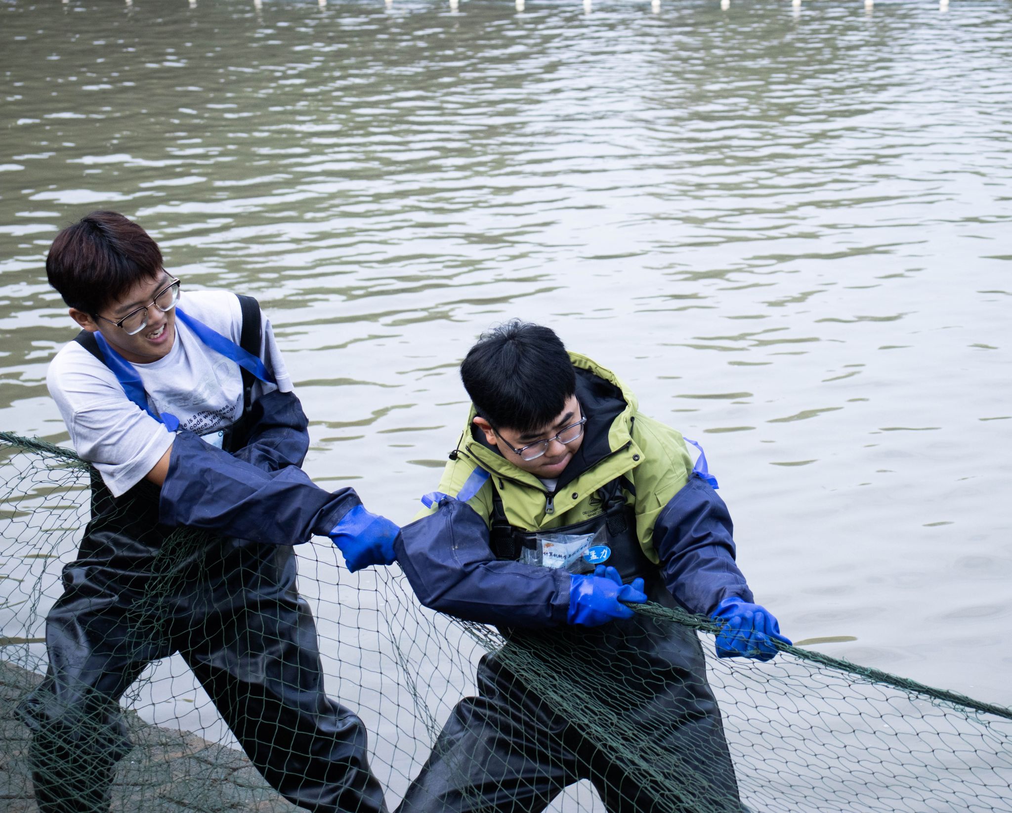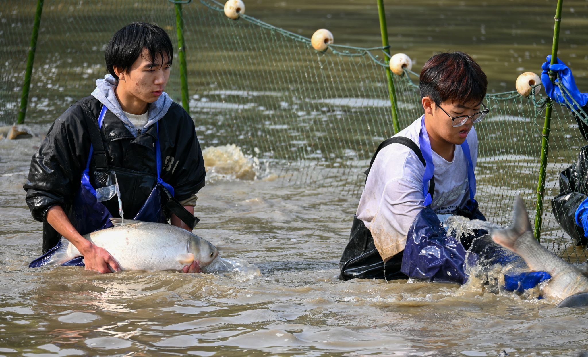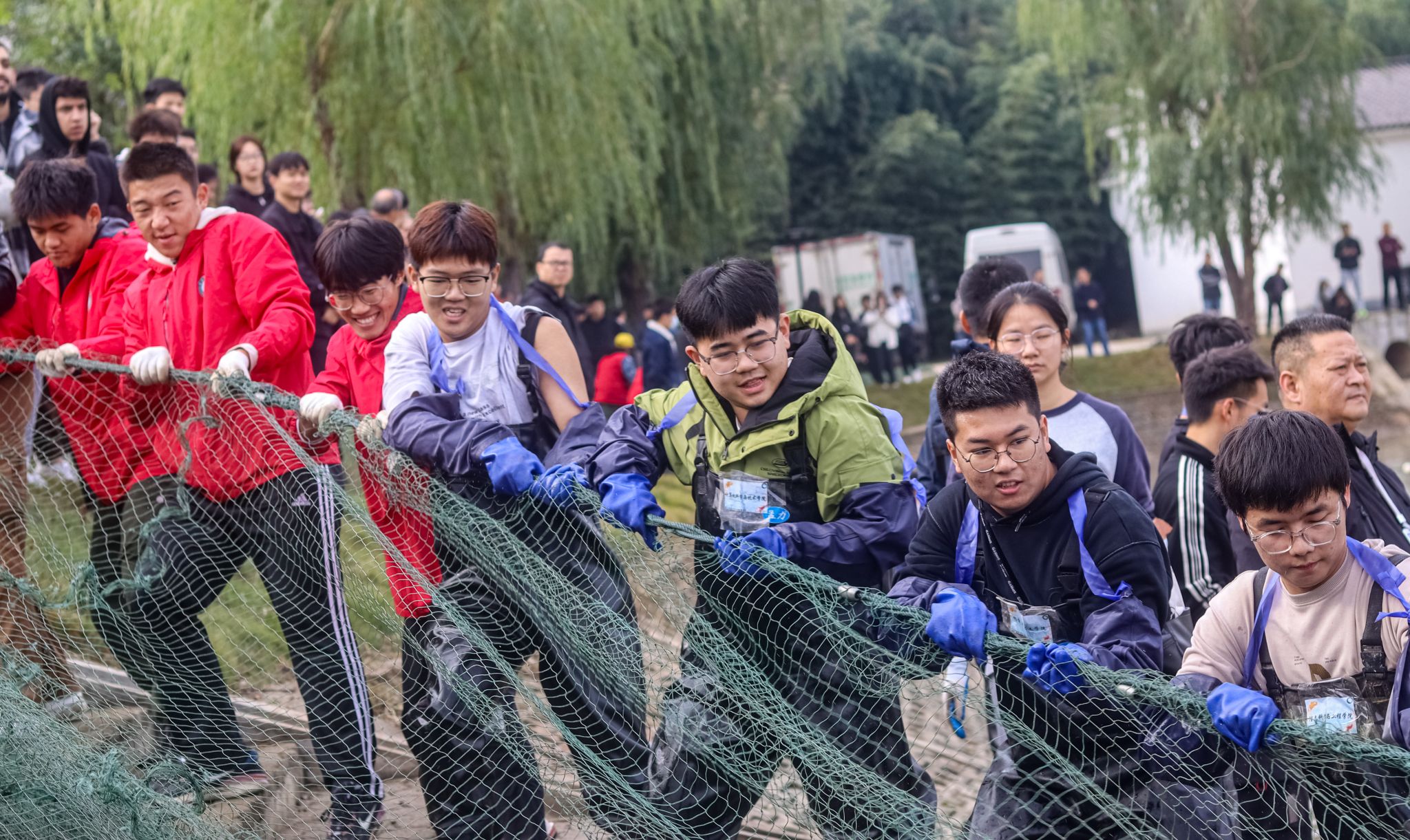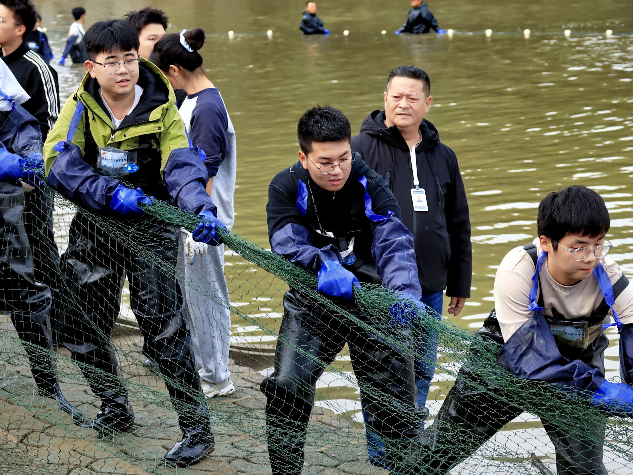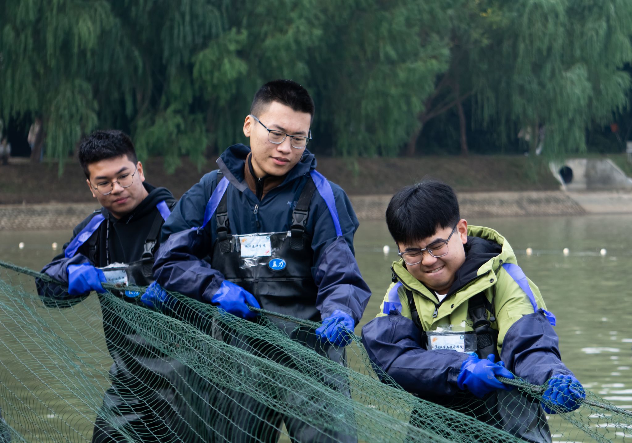 11月21日上午8时,学校近百名中外师生和后勤集团员工身着统一的红色服装,在沁湖边拉开了捕鱼活动的序幕。经过半个多小时的激烈争夺,信息学院徐润收获了一条20.5斤重的大鱼,获得了今年的“捕鱼王”称号。