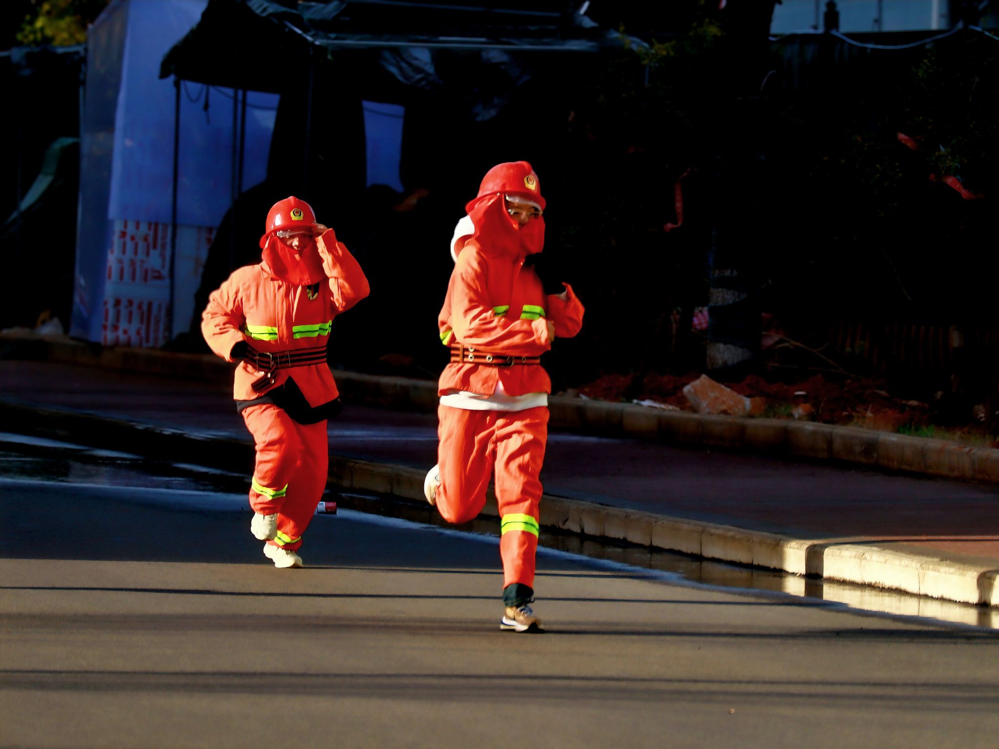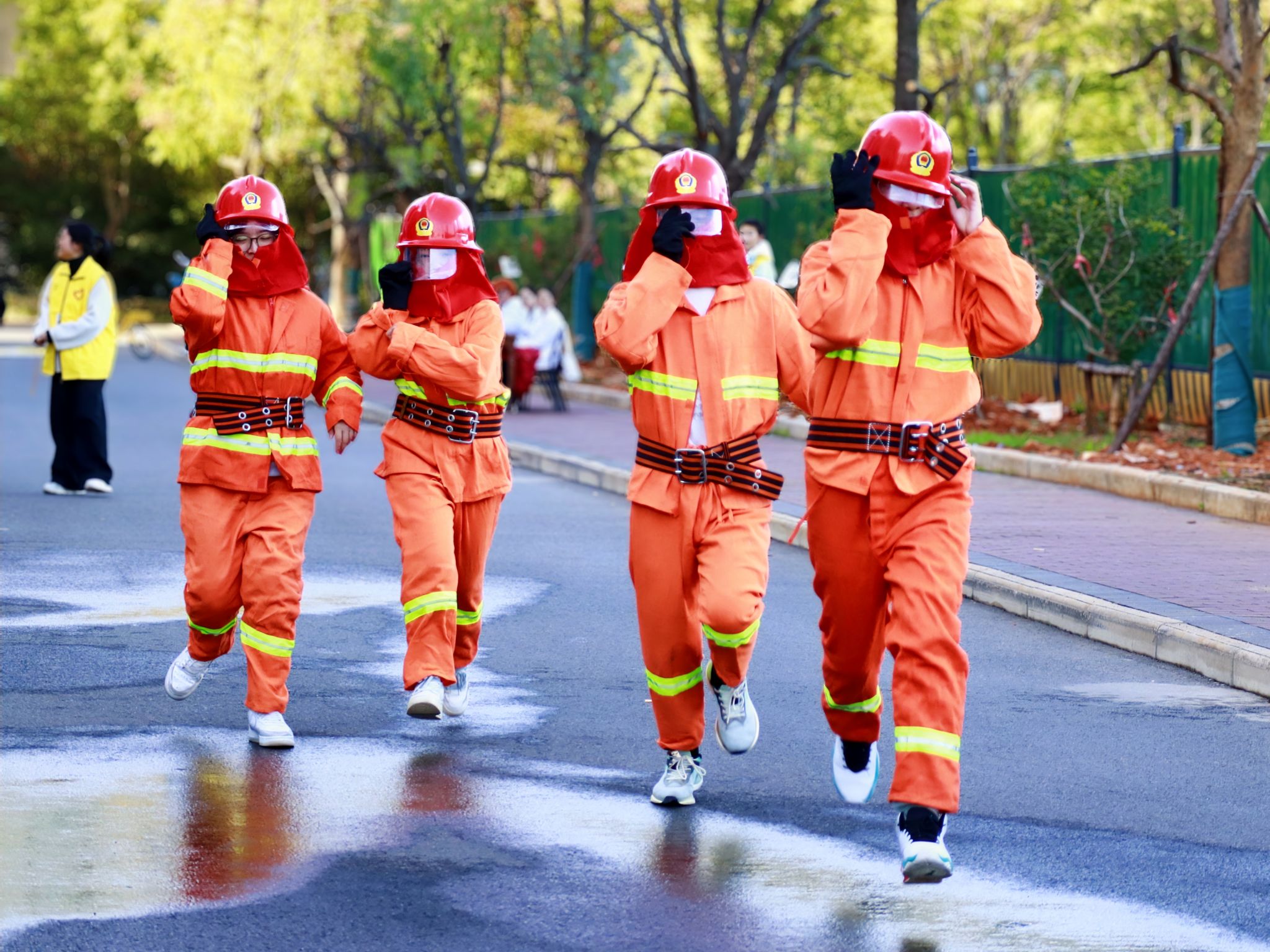 选手跑步前往灭火点 王铭浩摄