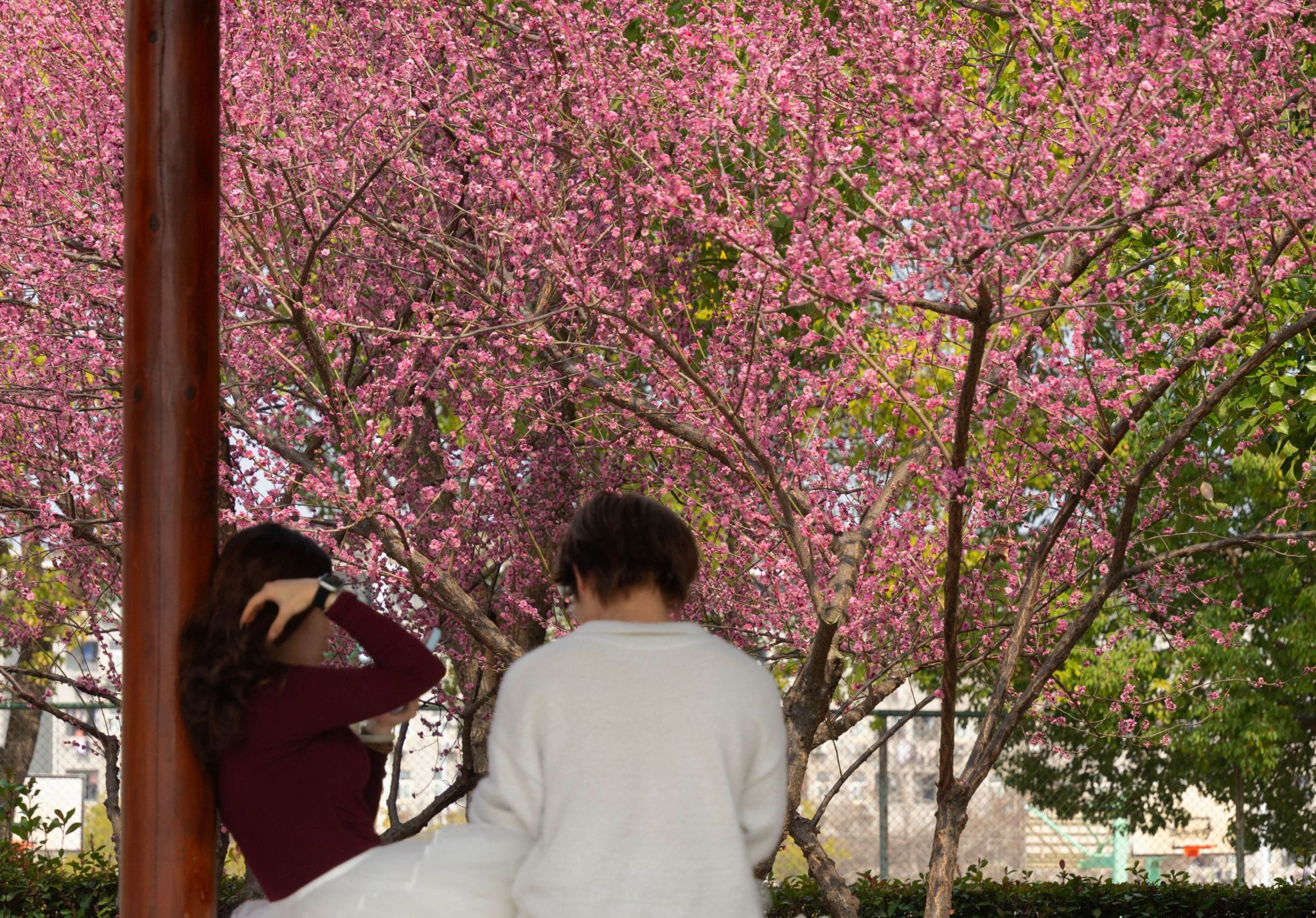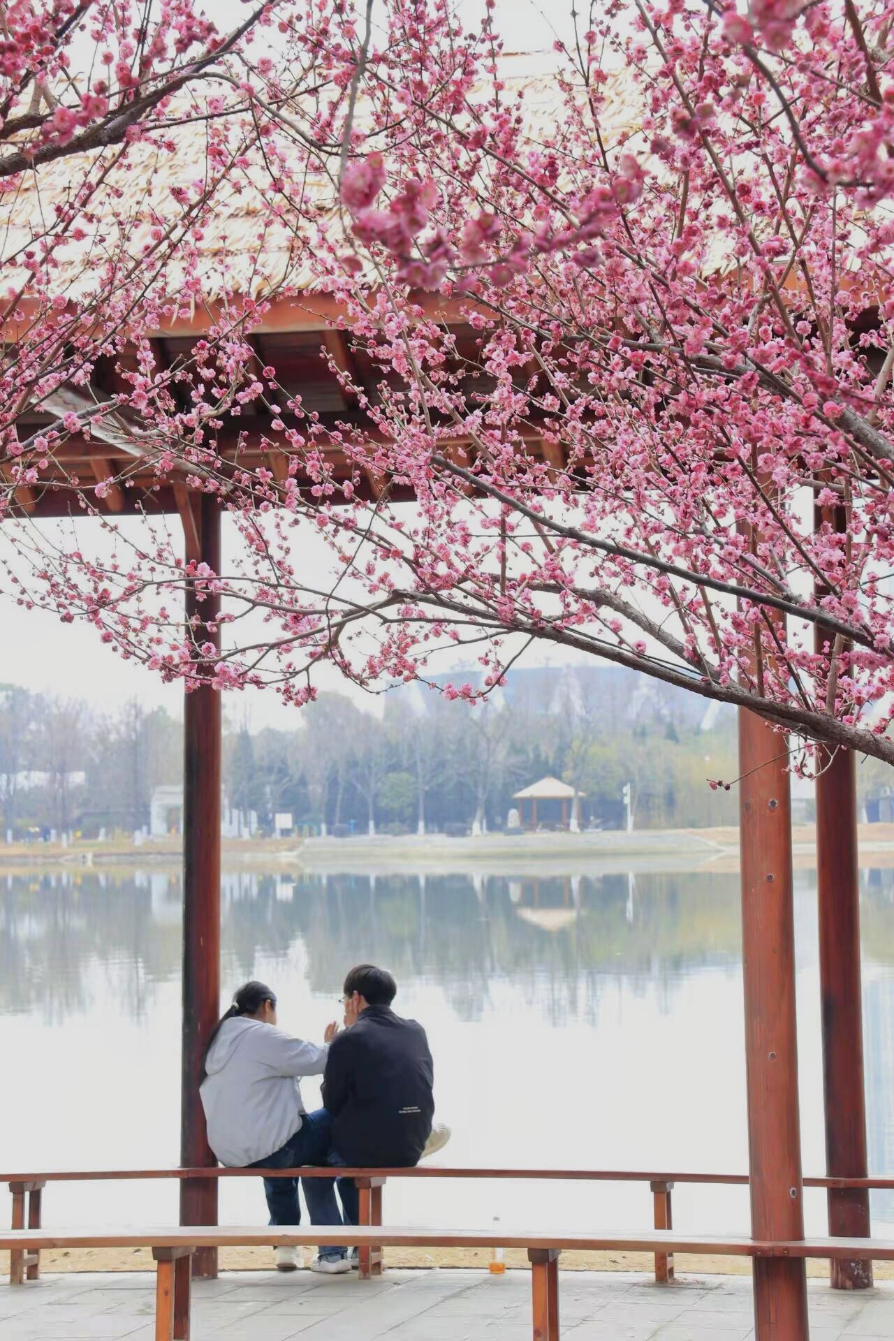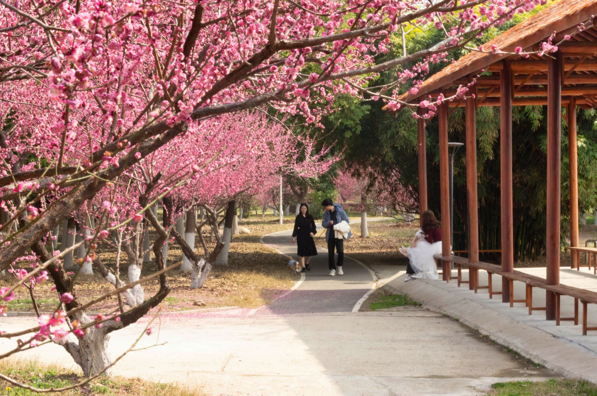 2025年冬末春初,武科大湖区梅花正盛,一片嫣红,引来了许多教工学生前来观梅,学生记者们也记录下了自己镜头下的梅花。