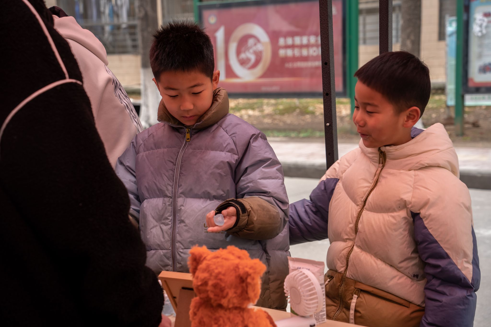 工作人员向小朋友讲解游戏规则 高文帅摄
