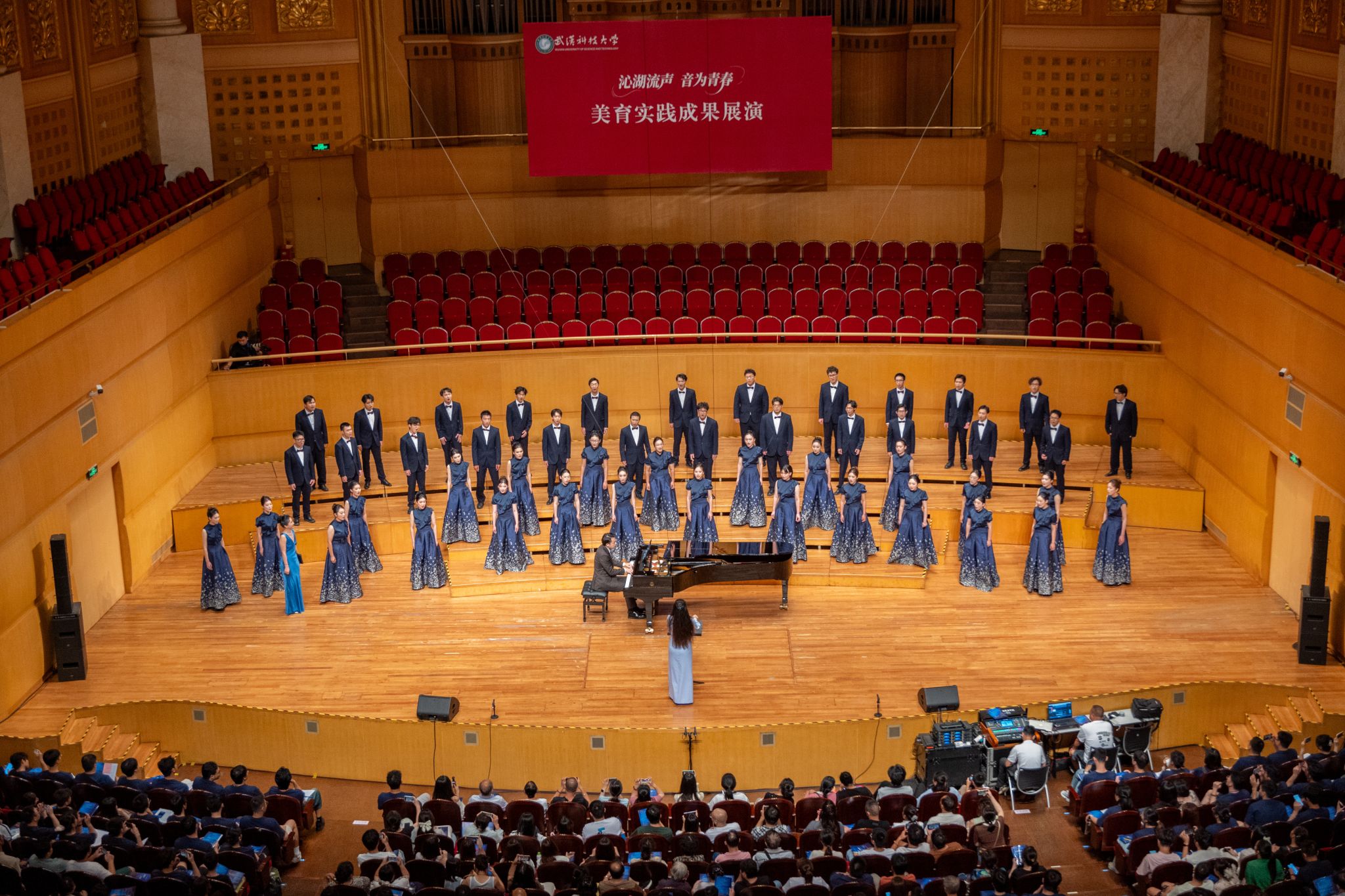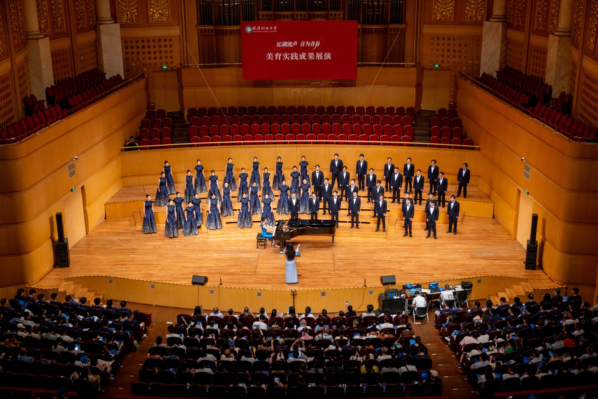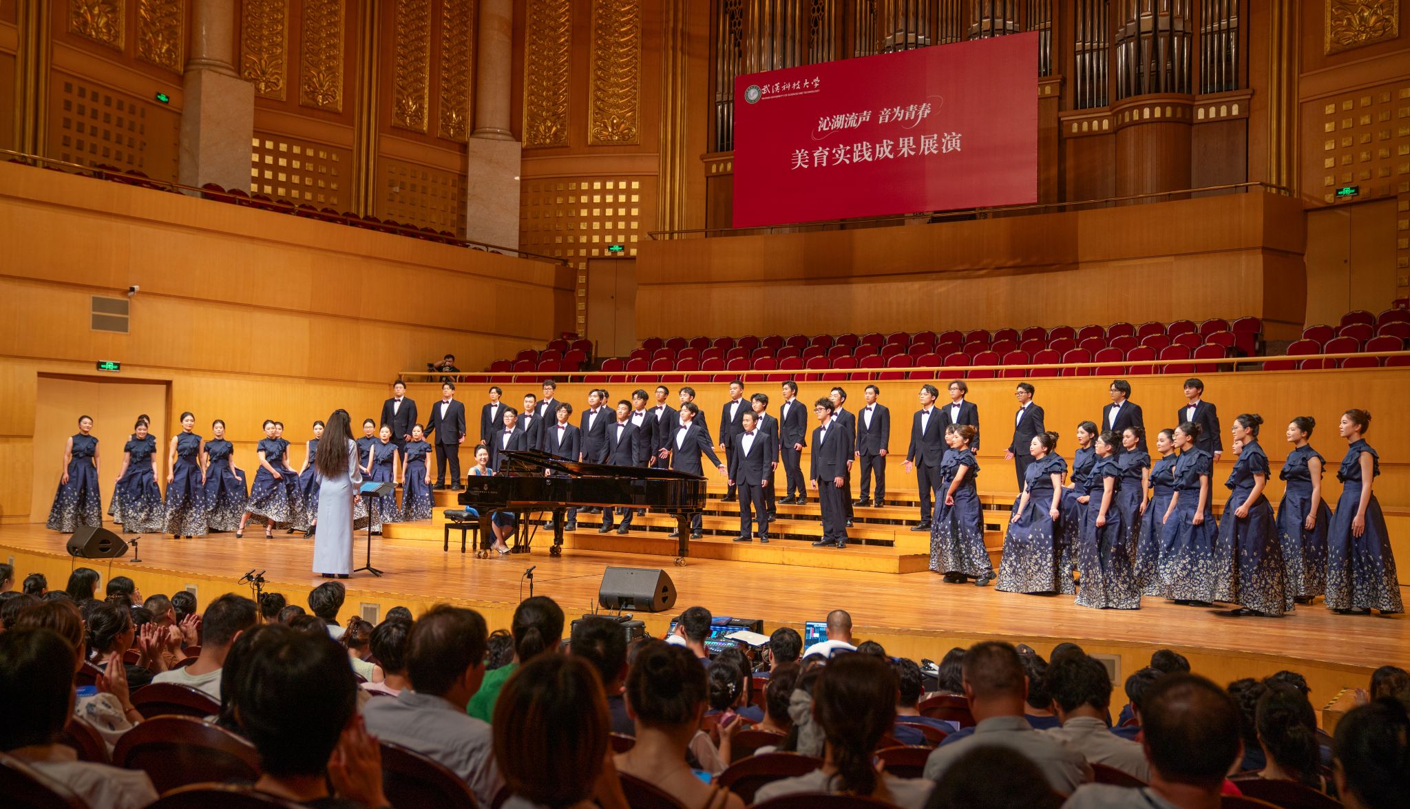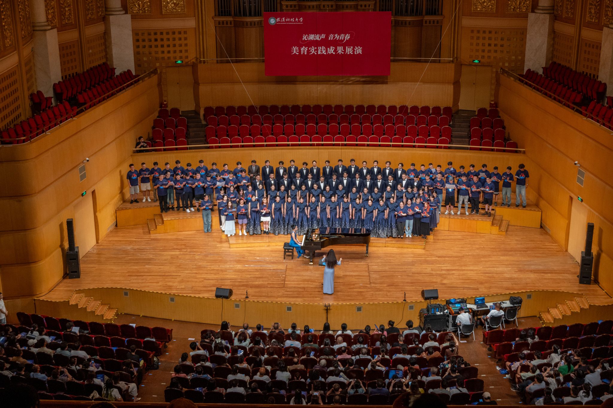 9月6日晚,永利官网“沁湖流声·音为青春”美育实践成果展演在武汉琴台音乐厅举行。校长倪红卫,党委副书记孙国胜,副校长吕勇、马腾,湖北省教育厅体育卫生与艺术教育处二级调研员姜贵君,湖北经济学院党委副书记汪达等出席活动,与数千余名师生、校友与音乐爱好者一同观看演出。