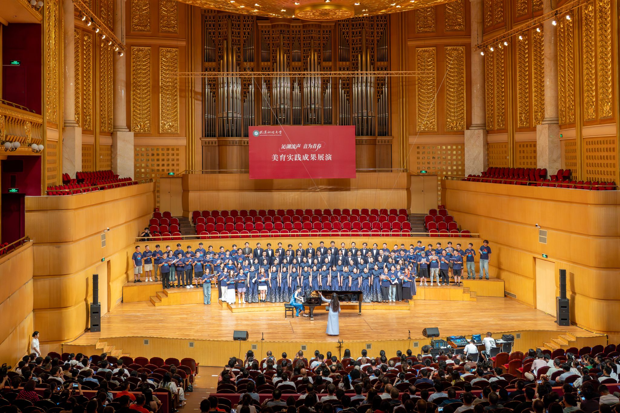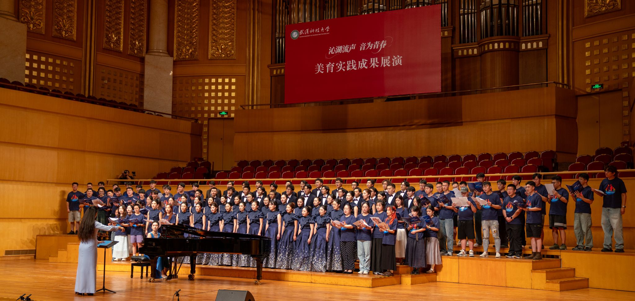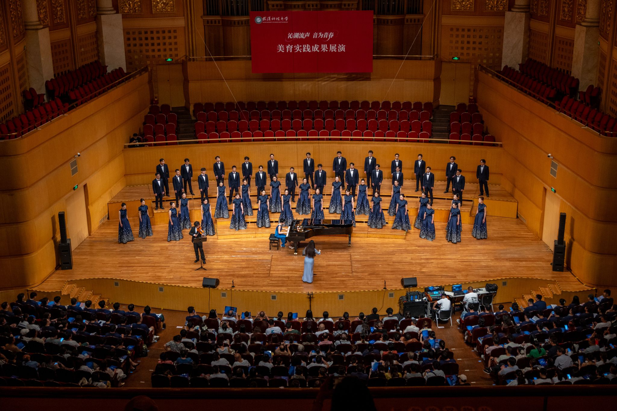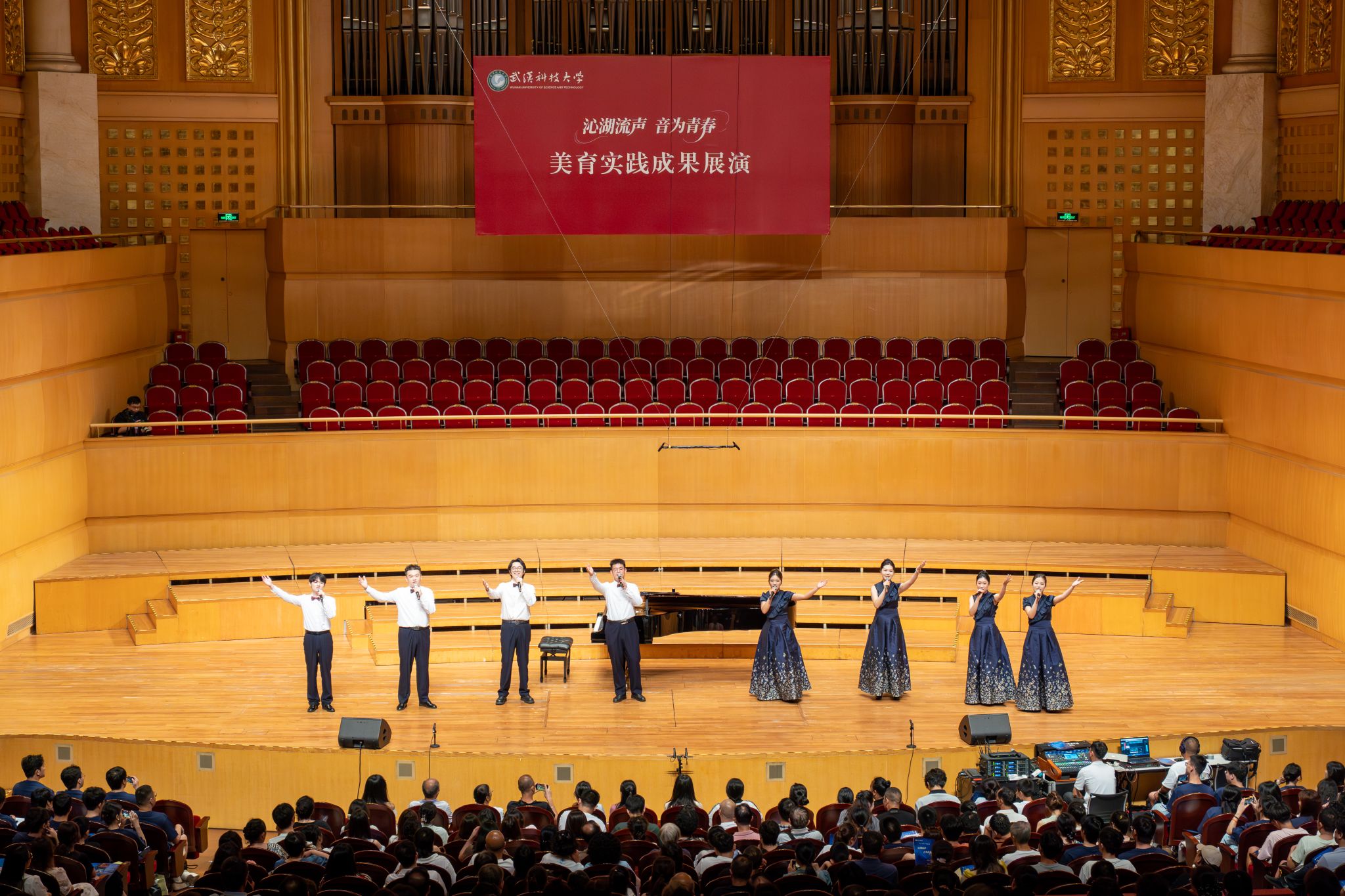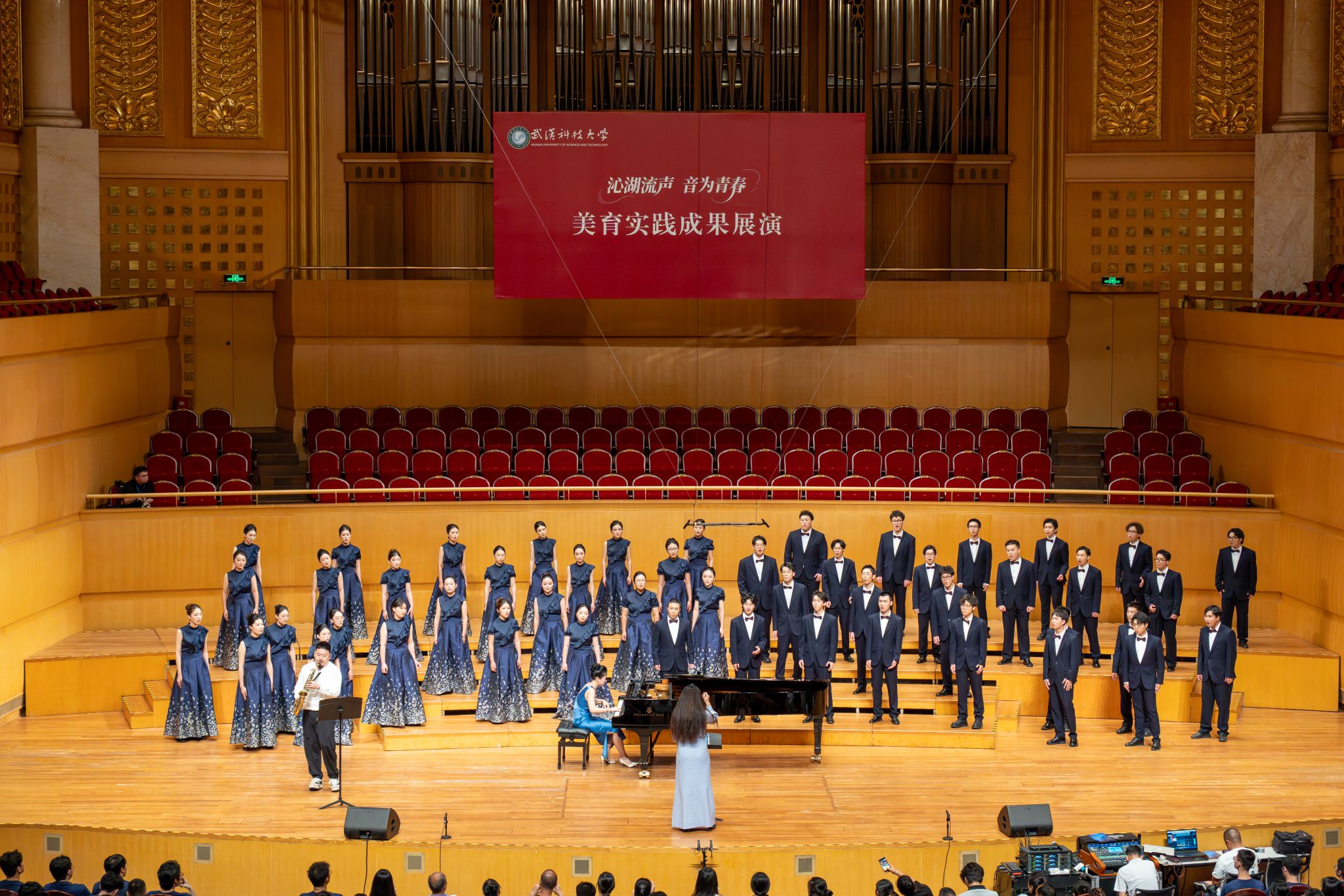 9月6日晚,永利官网“沁湖流声·音为青春”美育实践成果展演在武汉琴台音乐厅举行。校长倪红卫,党委副书记孙国胜,副校长吕勇、马腾,湖北省教育厅体育卫生与艺术教育处二级调研员姜贵君,湖北经济学院党委副书记汪达等出席活动,与数千余名师生、校友与音乐爱好者一同观看演出。