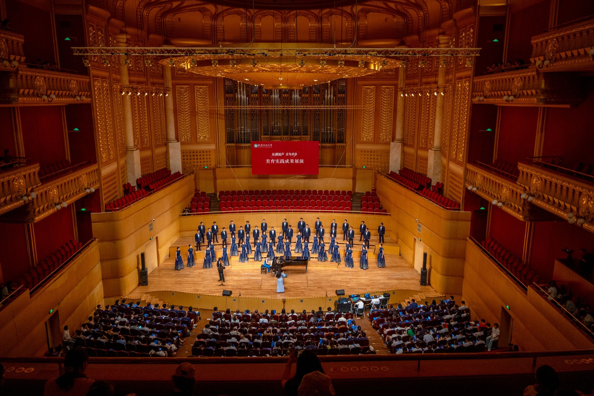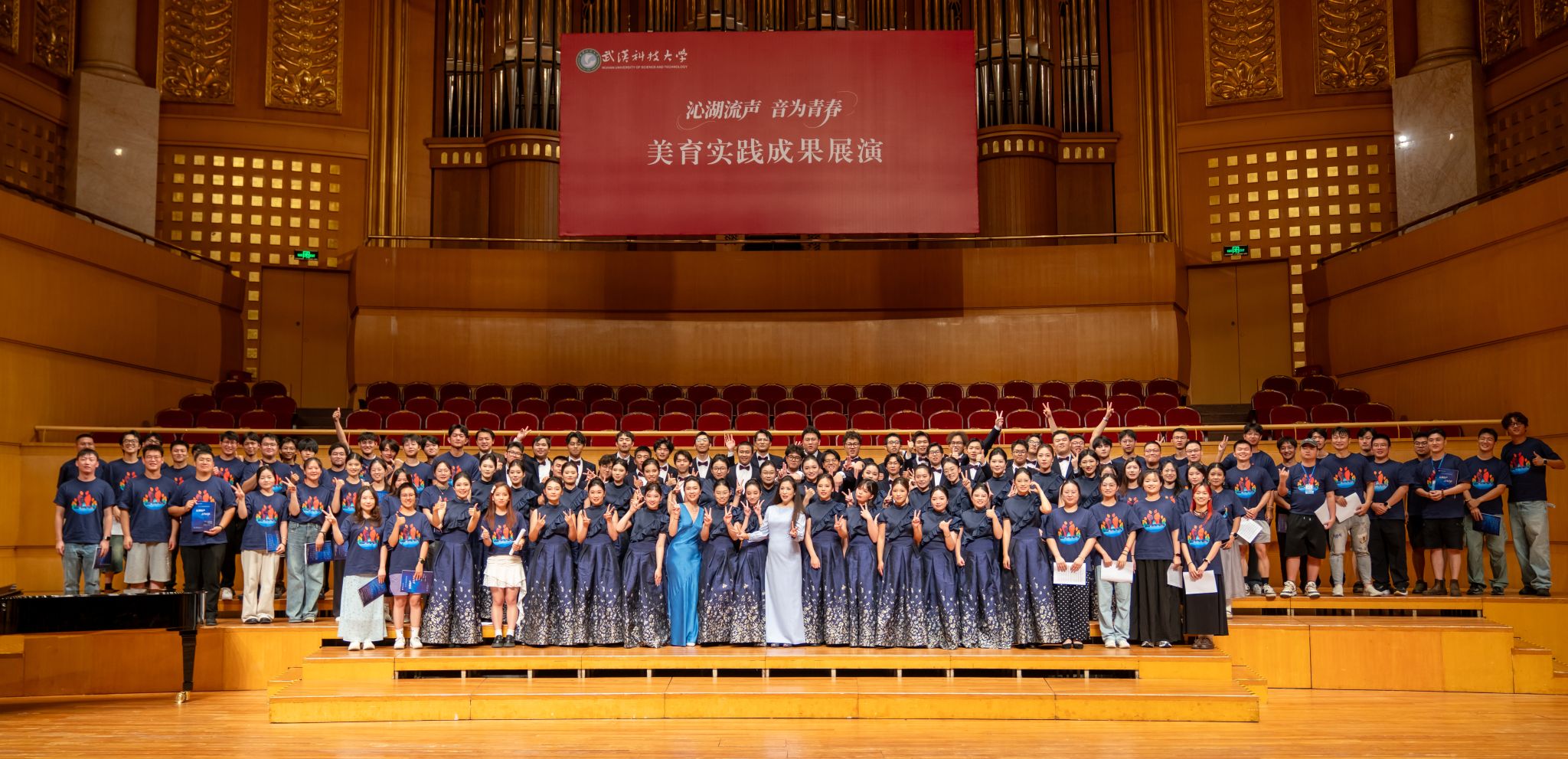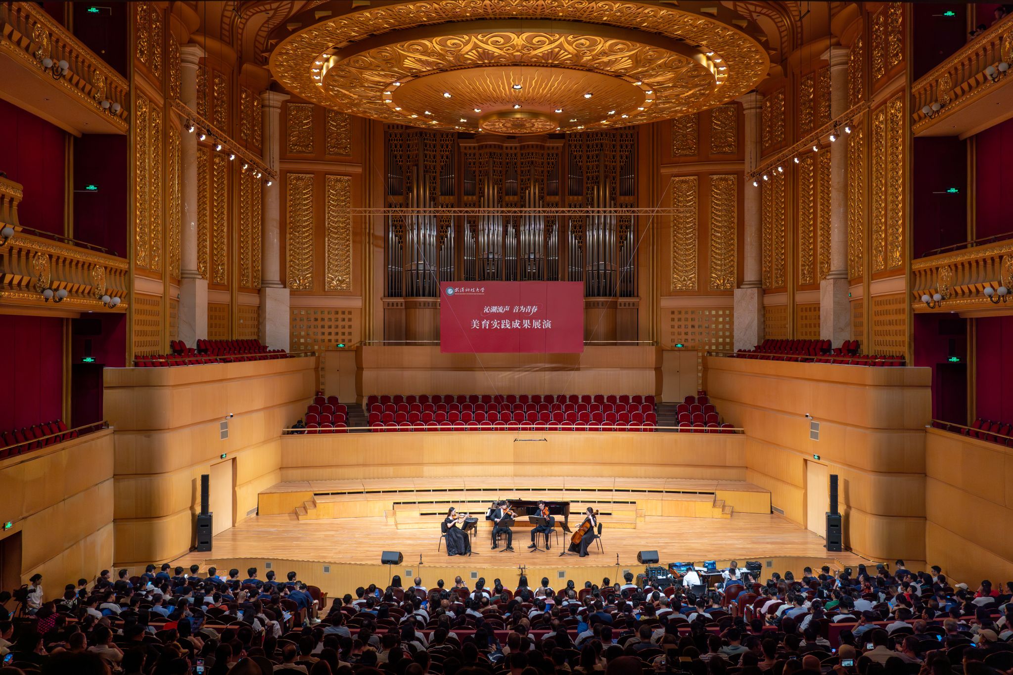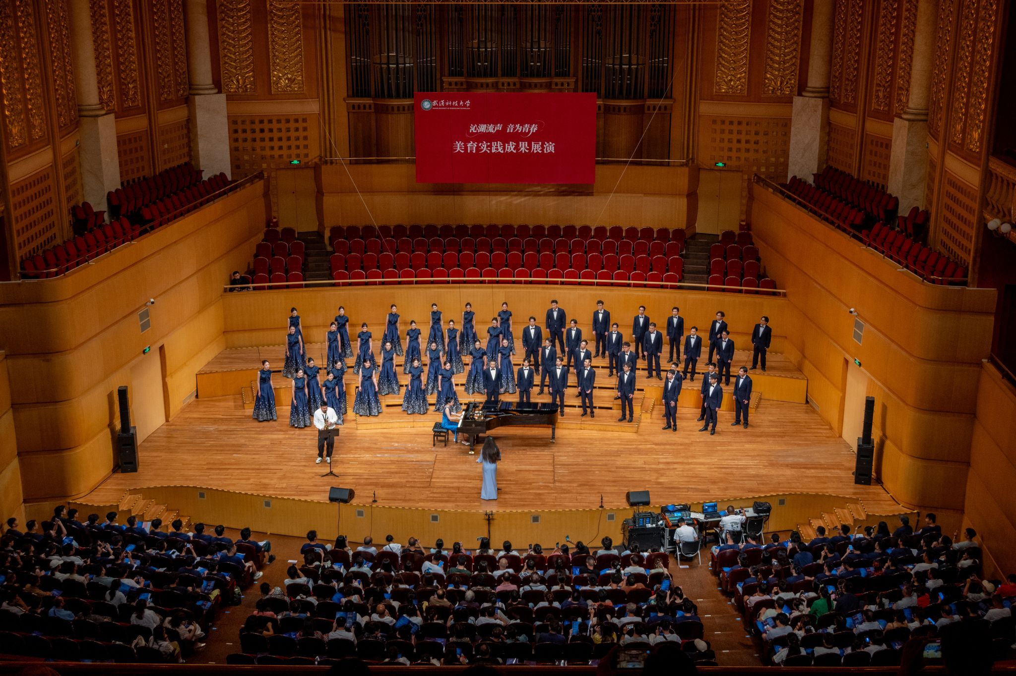 9月6日晚,永利官网“沁湖流声·音为青春”美育实践成果展演在武汉琴台音乐厅举行。校长倪红卫,党委副书记孙国胜,副校长吕勇、马腾,湖北省教育厅体育卫生与艺术教育处二级调研员姜贵君,湖北经济学院党委副书记汪达等出席活动,与数千余名师生、校友与音乐爱好者一同观看演出。