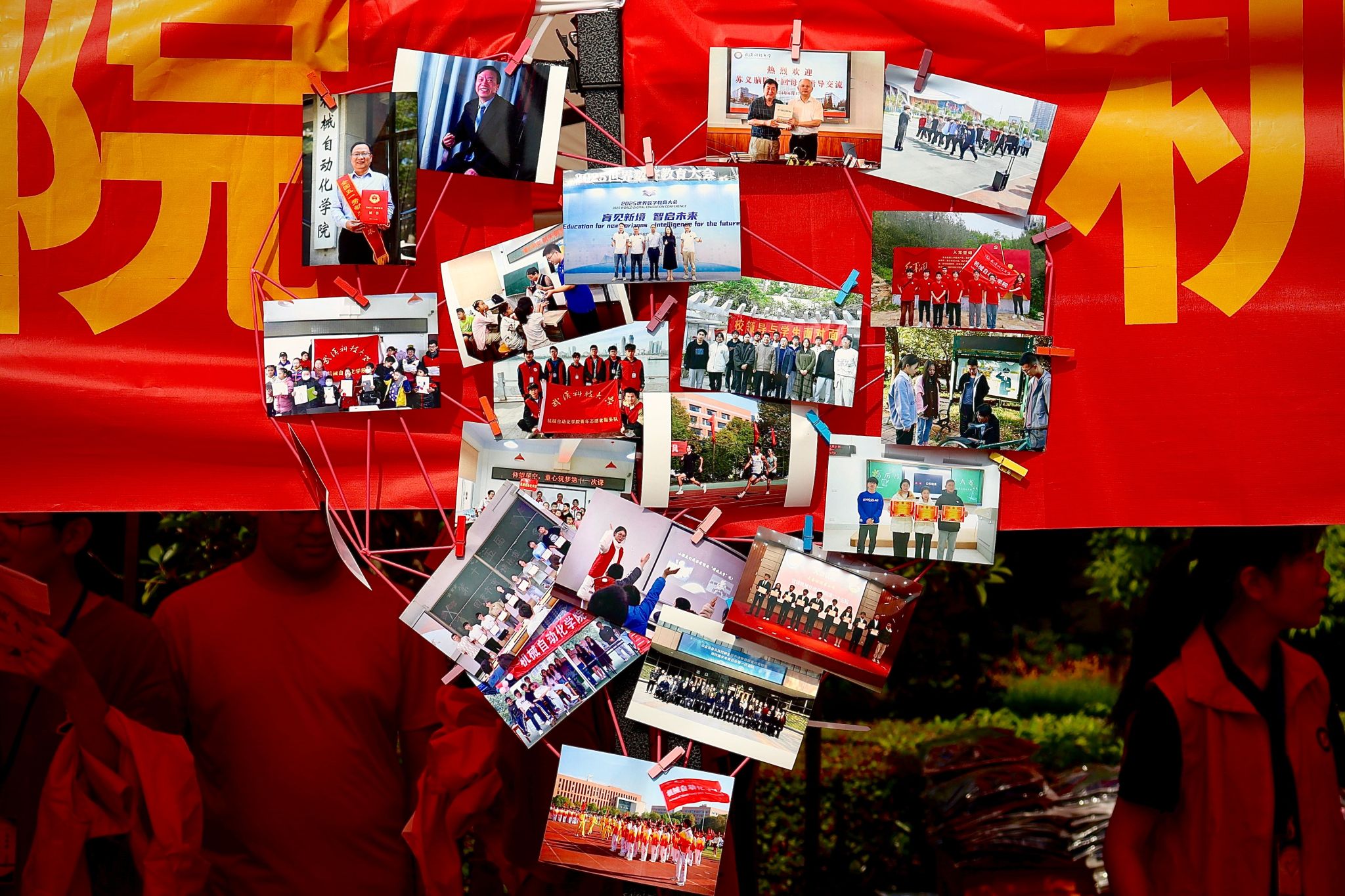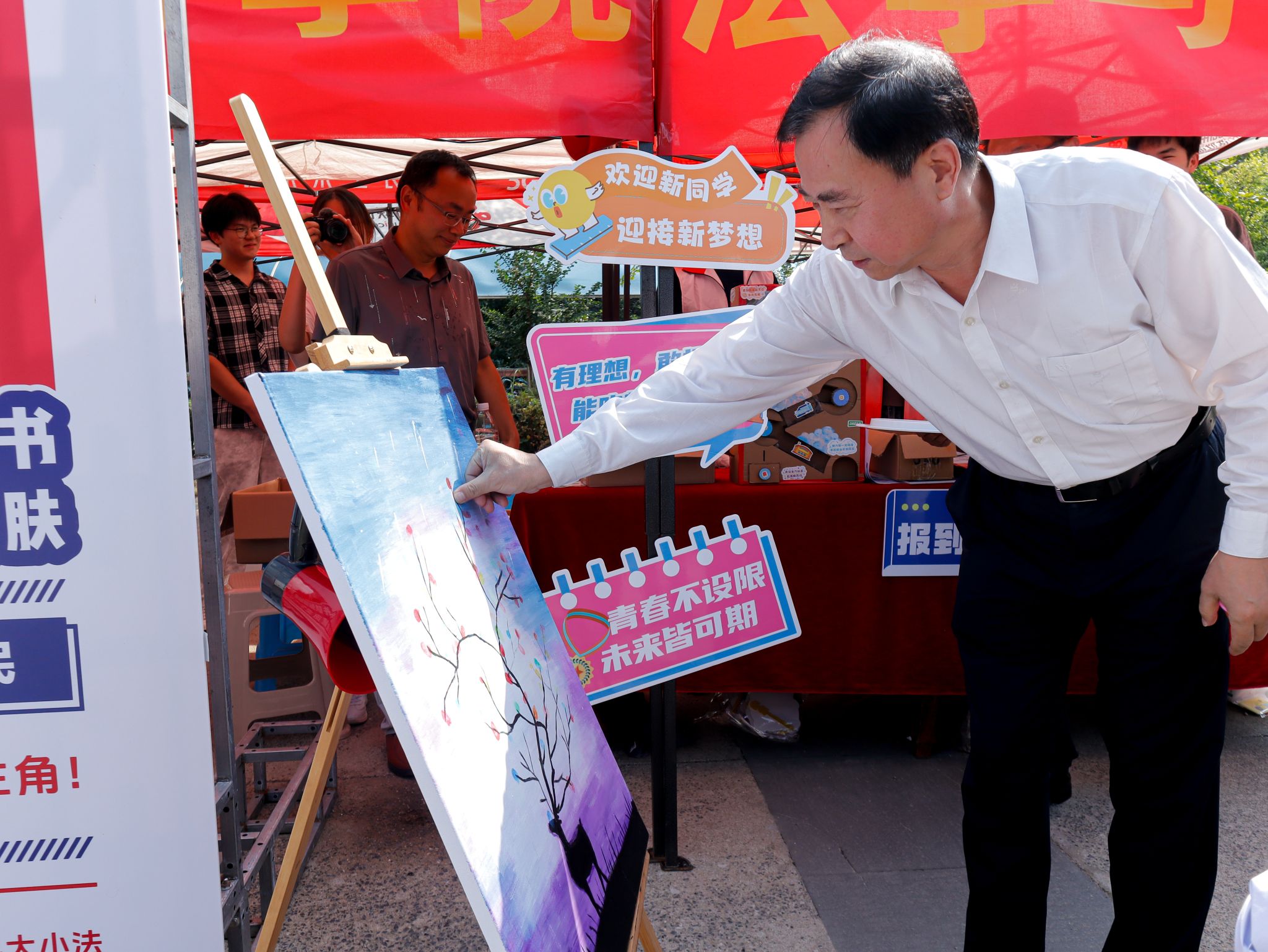 电子信息学院新生在签名墙留下自己名字 高文帅摄
