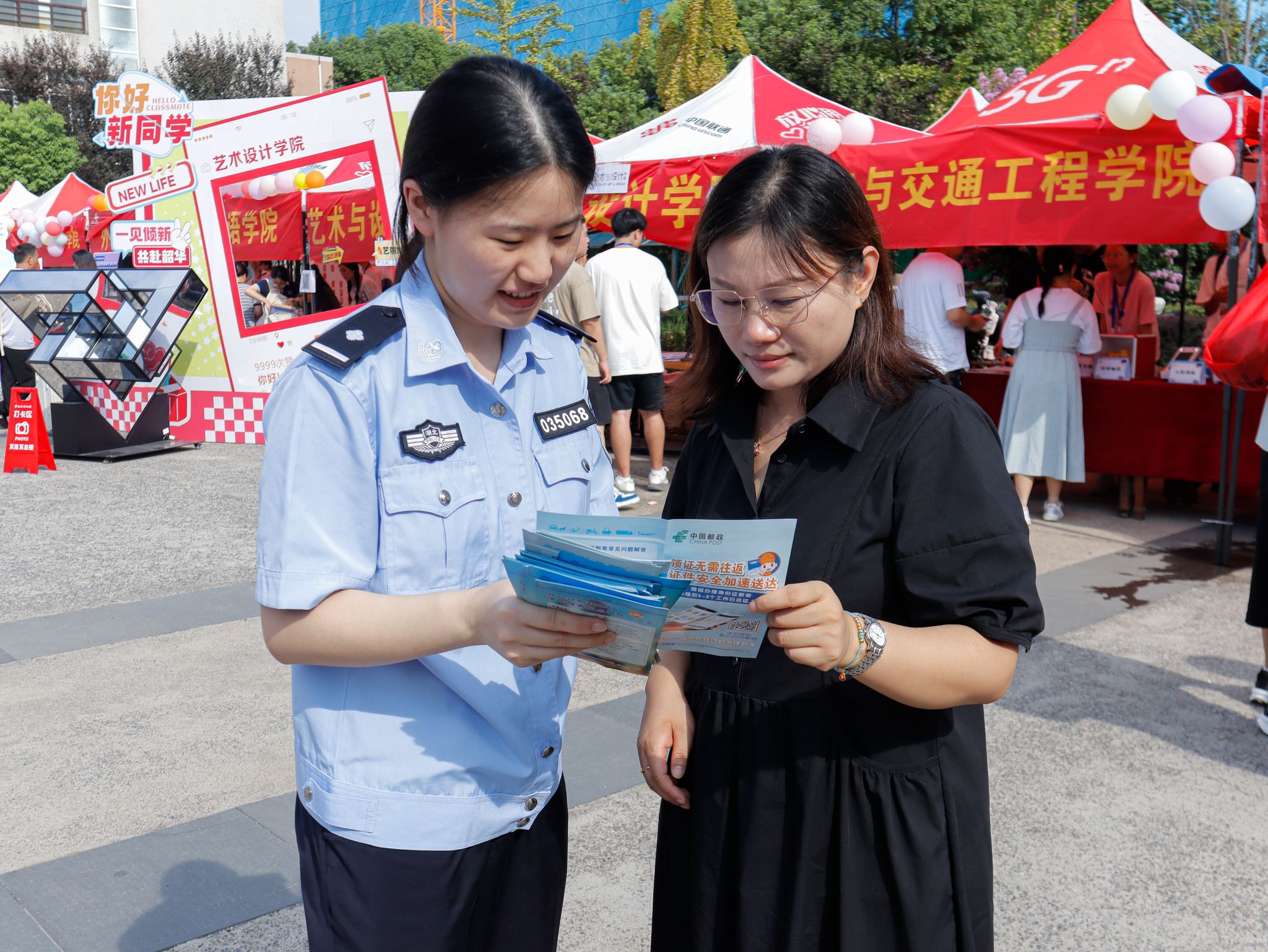 校派出所民警为新生家长讲解反诈知识 王铭浩摄