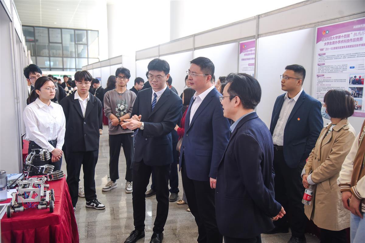据悉,该校此次校内“挑战杯”首次突破文本评审的形式,对标省赛(湖北省“挑战杯”大学生课外学术科技作品竞赛),比赛设置哲学与社会科学、机械与控制、信息技术与数理、医学与生命科学、能源化工5个组别,吸引全校近万名师生参与,233个项目进入院赛,77个项目进入校赛。除了参展接受随机评审之外,还会在评审教室进行正式答辩。