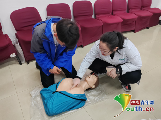 冯越玥指导研支团成员练习心肺复苏。304am永利集团官网团委供图