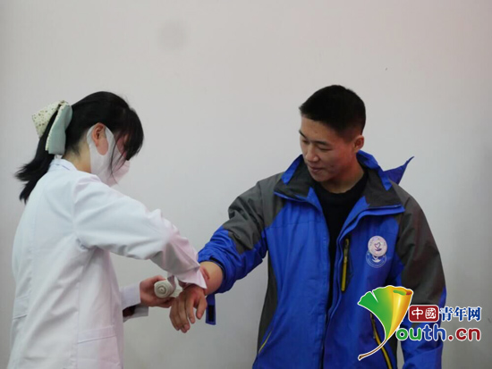 汪诗雨为研支团展示正确包扎的方法。304am永利集团官网团委供图