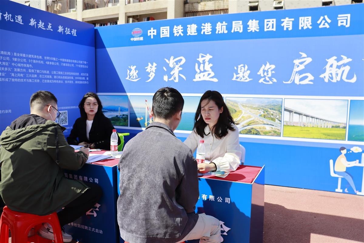 中国铁建港航局集团有限公司为此次招聘会提供了港船运管类、施工管理类、工程技术类、财经法务类、人文综管类五个覆盖了50多个专业类别的岗位。该公司武汉分公司人力资源部经理陈雪介绍:“已经连续多年参加了武科大校招,且都是申请专场招聘会。这次招聘规模远大于之前,到场咨询学生更多,招收到的专业对口学生也更多,情况非常满意。”她表示,未来几天六所学校都会前往宣传,希望今年能招到更多就业人才。
