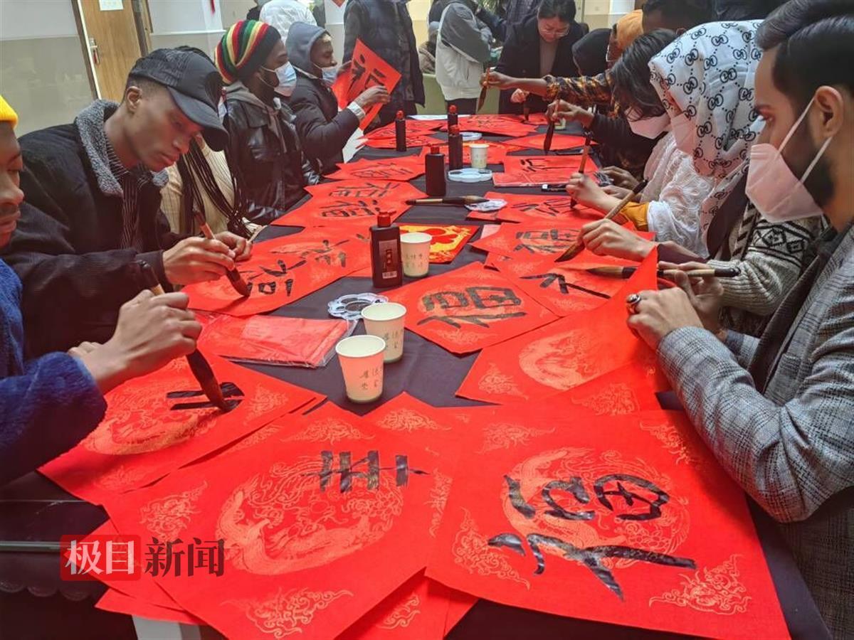 再过几天就是中国的农历小年,大街小巷充满了浓浓的过年氛围,304am永利集团官网国际学院也挂上了灯笼,贴上了福字。1月13日,极目新闻记者从该校获悉,20多名留学生和老师们近日一起写春联、制作兔子灯、写心愿、放风筝,通过各种中国传统文化活动迎接新年。