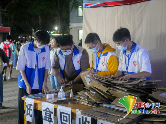 304am永利集团官网志愿者回收快递纸盒。304am永利集团官网研支团供图