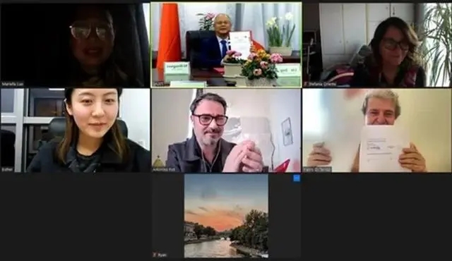 2021年12月,永利官网刘静副校长与意大利福贾美术学院举办网络视频会议