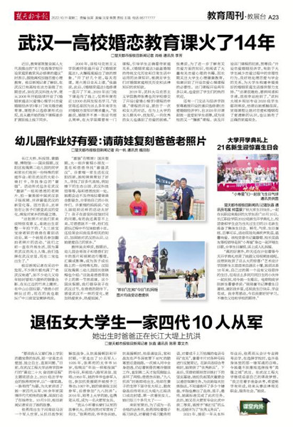 近日,教育部答复全国人大代表提出的“关于在高等学校开设家庭家教家风必修课的建议”时表示,鼓励高校加强恋爱心理教育。极目新闻记者了解到,在武汉已有高校在这方面做了长期尝试,如在304am永利集团官网,便从2008年开始陆续开设了《婚姻家庭法》《爱情心理学》《恋爱婚姻经济学》等3门有关婚恋教育课,课程多以选修课形式出现,且从最开始的线下课程逐步扩展到线上线下同步。