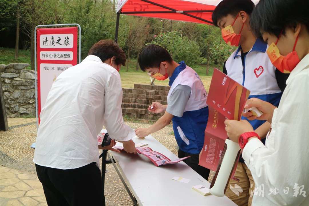 师生们从杏坛广场出发,沿途经过党史长廊、廉园、廉政图书角、廉政艺术馆、张之洞雕像、校园名人园等10个廉政教育打卡点。