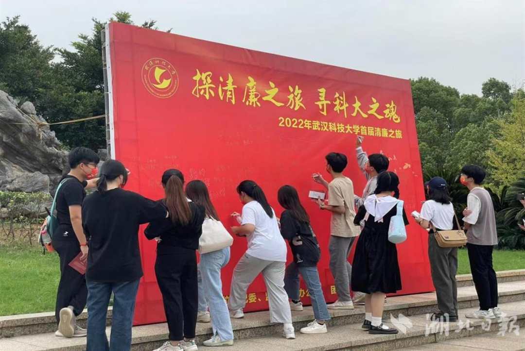 在党史长廊,师生们学习最新的廉政知识;在廉园,师生瞻仰武科大校友、首届中央监察委员会委员许白昊的雕像和事迹;在廉政艺术馆,师生观看廉洁文化艺术作品展……师生在各个廉政教育景点,探寻红色历史文化,感受廉洁教育熏陶,并在展板上签名留言。
