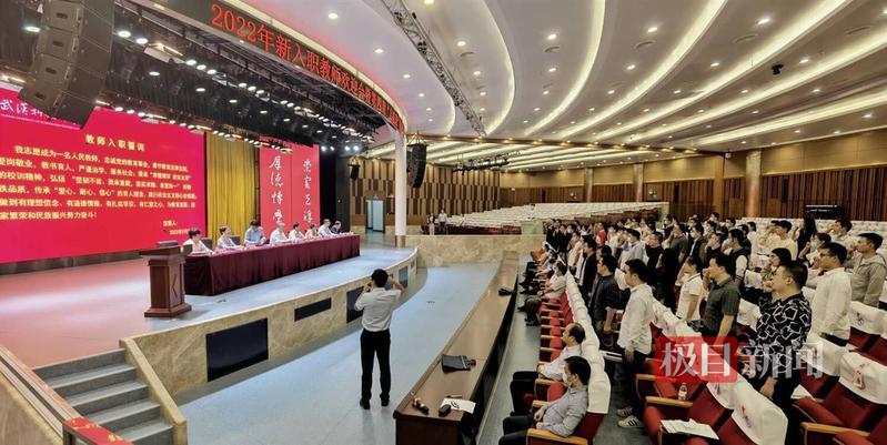 据悉,从2019年开始,武科大连续四年为新教师举行宣誓仪式和岗前集中培训。新进教师们不仅参与一系列教育教学和师德师风培训,还作为助教,在资深教师的指导下承担一门本科课程的助课任务,通过授课考察与资格认定后,方可独立授课。 (图片由通讯员提供)