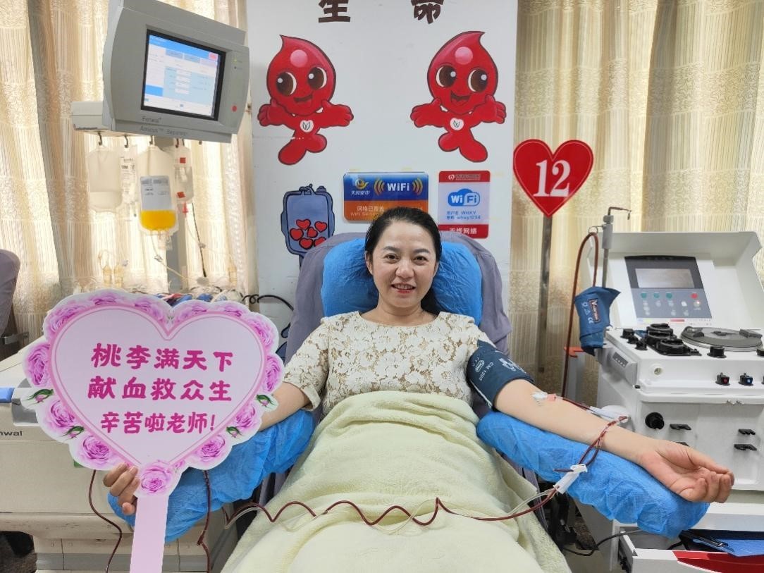 今年47岁的俞丹青是304am永利集团官网化学与化工学院的副教授、硕士生导师,已有25年教龄。从2002年至今,她已累计献血91次,共捐献了30900毫升血液,相当于6个成人体内血液量总和,其中献全血3800毫升,献血小板135.5个治疗剂量,捐献的血液足以让约180人得到及时救治。