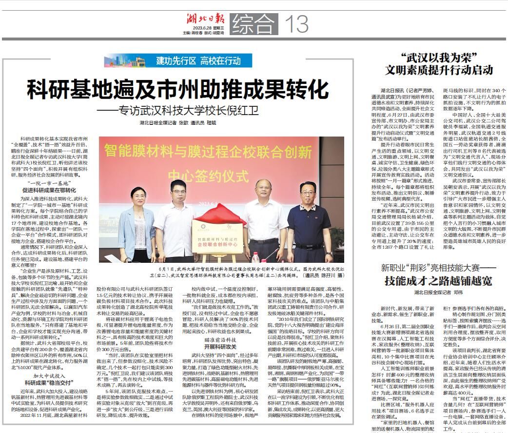 采访结束前,倪红卫表示,武科大正在以一流学科建设为引领,不断优化有组织科研工作体系,推动深度合作、协同创新、集成攻关、成果转化,以更高质量、更大贡献服务国家需求和地方经济社会发展。