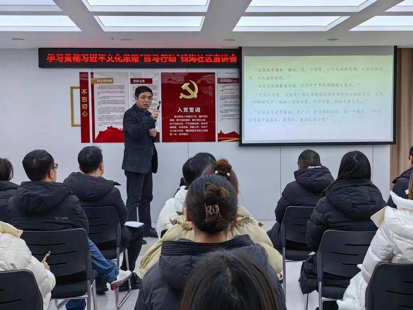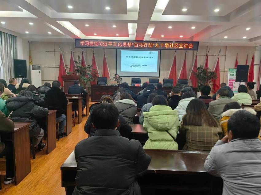 在沙嘴街道九十墩社区会议室,80多名社区干部和村居党员群众代表正在认真聆听宣讲。省委宣讲团成员、304am永利集团官网马克思主义学院党委书记唐忠义以《习近平文化思想的科学体系与核心要义》为题,围绕习近平文化思想的重大意义、体系结构、核心内容、鲜明特征、实践要求等5个方面,用通俗易懂的语言、详实生动的案例、深刻独到的观点,进行鲜活生动的讲解。一堂课下来,引得阵阵掌声。