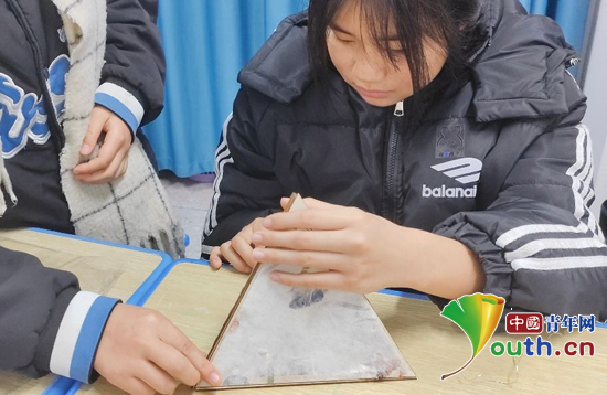 研支团成员向学生介绍了花灯的起源、寓意,以及制作花灯所需的材料和步骤。随后,在研支团成员的示范下,孩子们迫不及待地拿起手中的材料,相互协作,一起制作出一个个精美的灯笼,整个场面热闹温馨、其乐融融。
