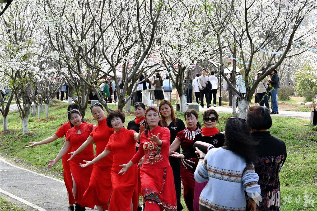 后勤保障部职工在樱花树下跳舞。通讯员 李周阳 摄