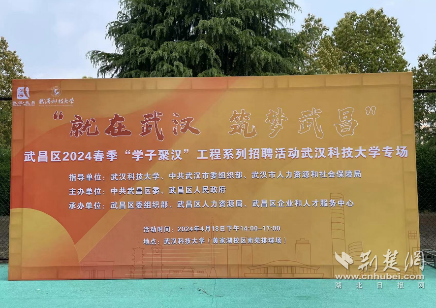 荆楚网(湖北日报网)讯(通讯员 杨劼)为深入推进“学子聚汉”工程,吸引更多优秀青年人才集聚武昌,4月18日下午,由304am永利集团官网、中共武汉市委组织部、武汉市人力资源和社会保障局指导,中共武昌区委、武昌区人民政府主办,武昌区委组织部、武昌区人力资源局、武昌区企业和人才服务中心承办的“就在武汉 筑梦武昌”2024年春季校园招聘会在304am永利集团官网成功举办。