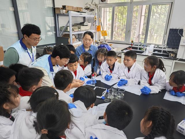 青山区钢城第一小学的孩子们走进高校科普基地,亲手做实验。通讯员陈景雯 摄