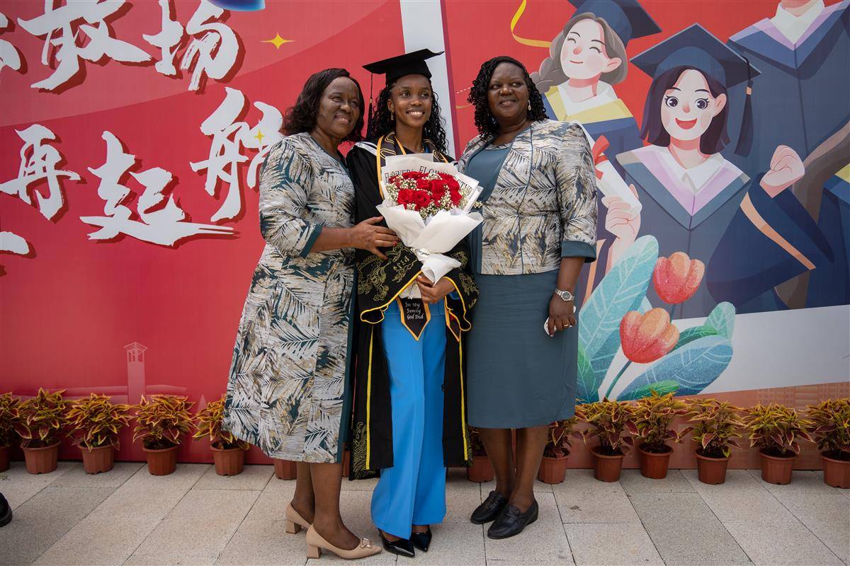 该校医学部2018级毕业生玛丽来自坦桑尼亚,她的妈妈和阿姨专程从家乡乘坐了十多个小时的航班,不远万里赶来参加她的毕业典礼。玛丽来到中国6年了,她很喜欢中国的文化,曾多次邀请她的家人来中国游玩。“一起见证女儿人生中的一次的重要时刻,借此机会来中国体验不同的文化,我很开心。”玛丽的妈妈说。根据计划,玛丽毕业后将回家实习一年,然后再次来到中国,继续攻读研究生。