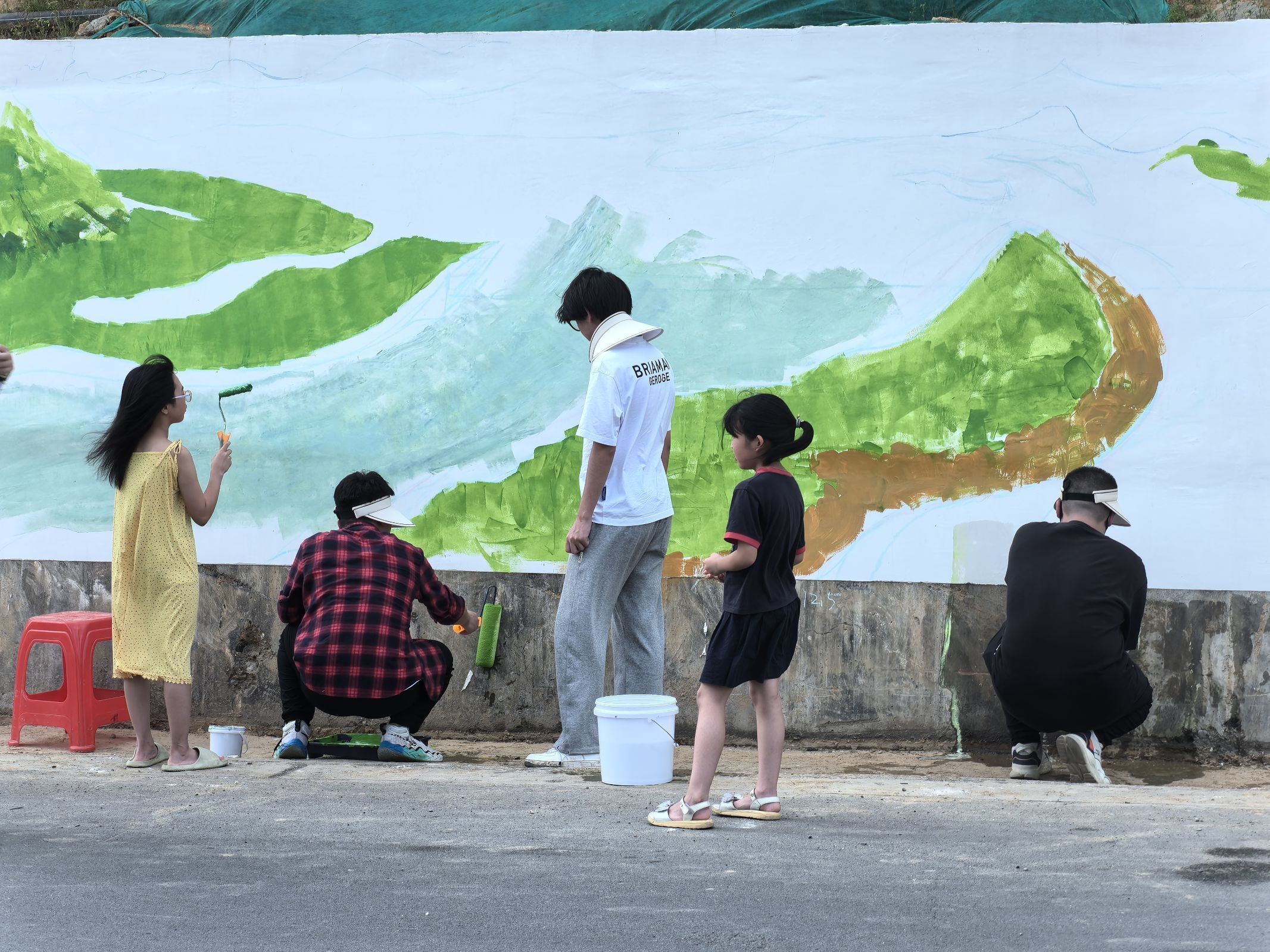 每天的墙绘现场,队员们积极与村民交流内容、确定细节,邀请小朋友在墙绘上书写方言文字,不少人围观。村民张伯说:“画得真漂亮!来往的人谁不会多看一眼?我们的村品牌推出去了!”