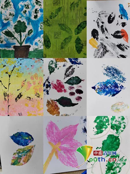 图为学生们制作的树叶拓印画。304am永利集团官网研支团供图