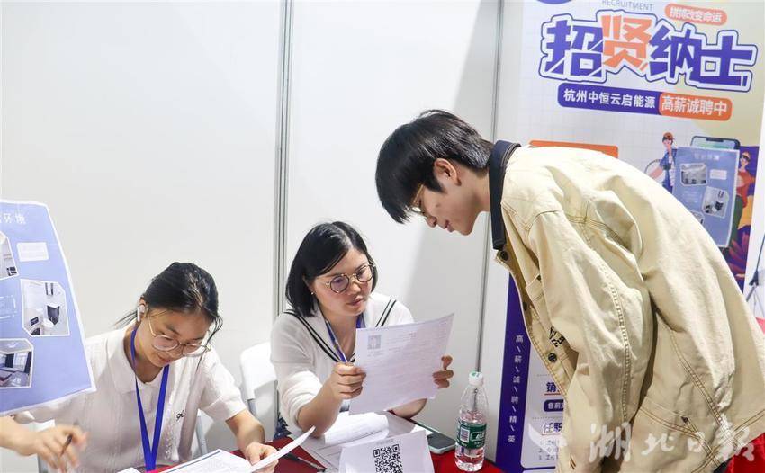 湖北潜江、杭州滨江、长沙经开区等地40余家企业组团到场“招贤纳士”。杭州滨江组团企业负责人涂相旭介绍,企业看重毕业生与岗位匹配的项目经历。中国一冶的企业HR在两小时内收到四十余份简历,他介绍,毕业生进入企业后会有会有导师“一对一”指导,并进行定向培训,有针对性地培养生产管理、技术研发等岗位人才。