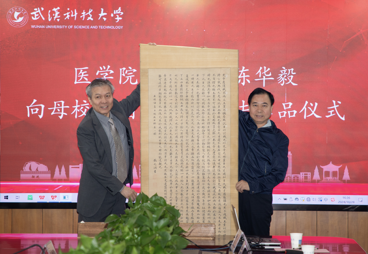 陈华毅1980年从武科大医学院毕业后,曾辗转东北鞍山、湖北沙市等地工作学习,现从事文物收藏相关工作。尽管已旅居日本多年,但他始终铭记母校当年的教育与培养。他表示,文物收藏不仅是个人爱好,更是一种文化传承和家国情怀。此次捐赠的张之洞书法作品并非他首次带文物回国。这些年,他一直致力于中国海外文物回流工作,已成功帮助不少文物回归祖国。