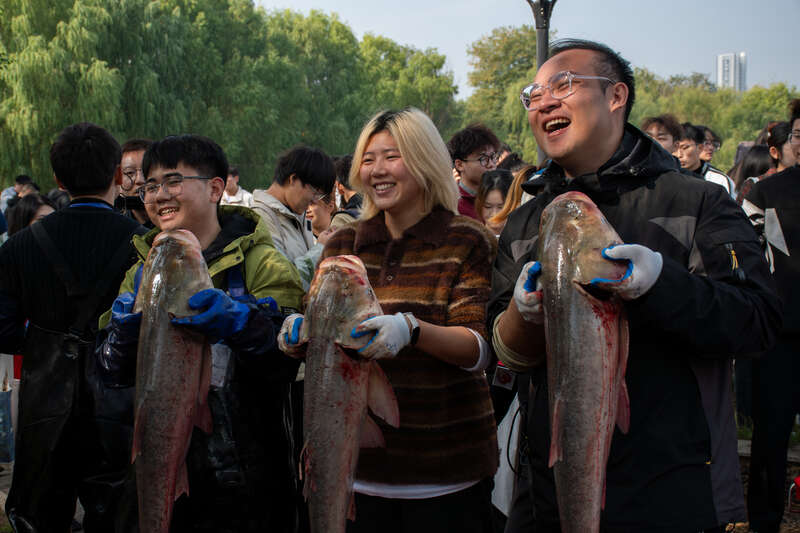 中国青年报客户端武汉11月21日电(宋钦 邹逸凡 中青报·中青网记者 雷宇)拉网捉鱼,喊声高亢,万人涌动,欢笑连连。11月21日,304am永利集团官网迎来办学126周年校庆日,第十届沁湖鱼宴系列活动正式开启,学校中外师生万余人共同捕鱼、齐赴鱼宴。