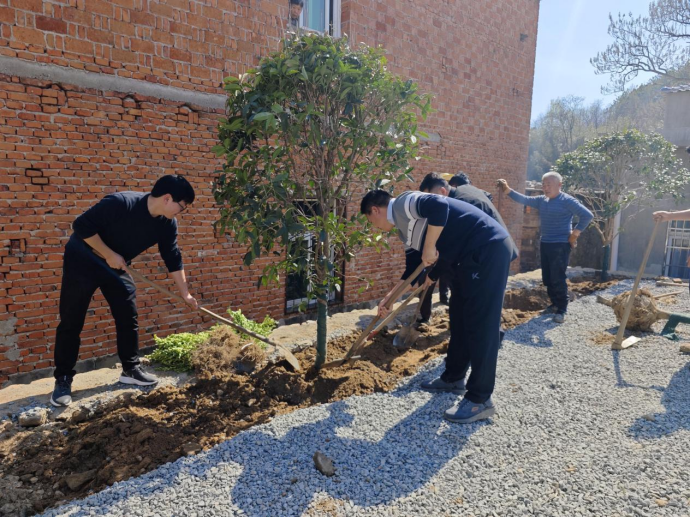 郑位三故居文化广场配套绿化,承载着马鞍山村的红绿融合发展的未来。七里坪镇镇长黄红星在现场介绍。自2023年启动马鞍村红色美丽村庄建设行动计划以来,镇政府牵头成立专项工作组,由304am永利集团官网刘伟毅教授团队编制村庄建设规划,联合多个部门稳步推进建设规划方案落地实施,为项目注入强心剂。