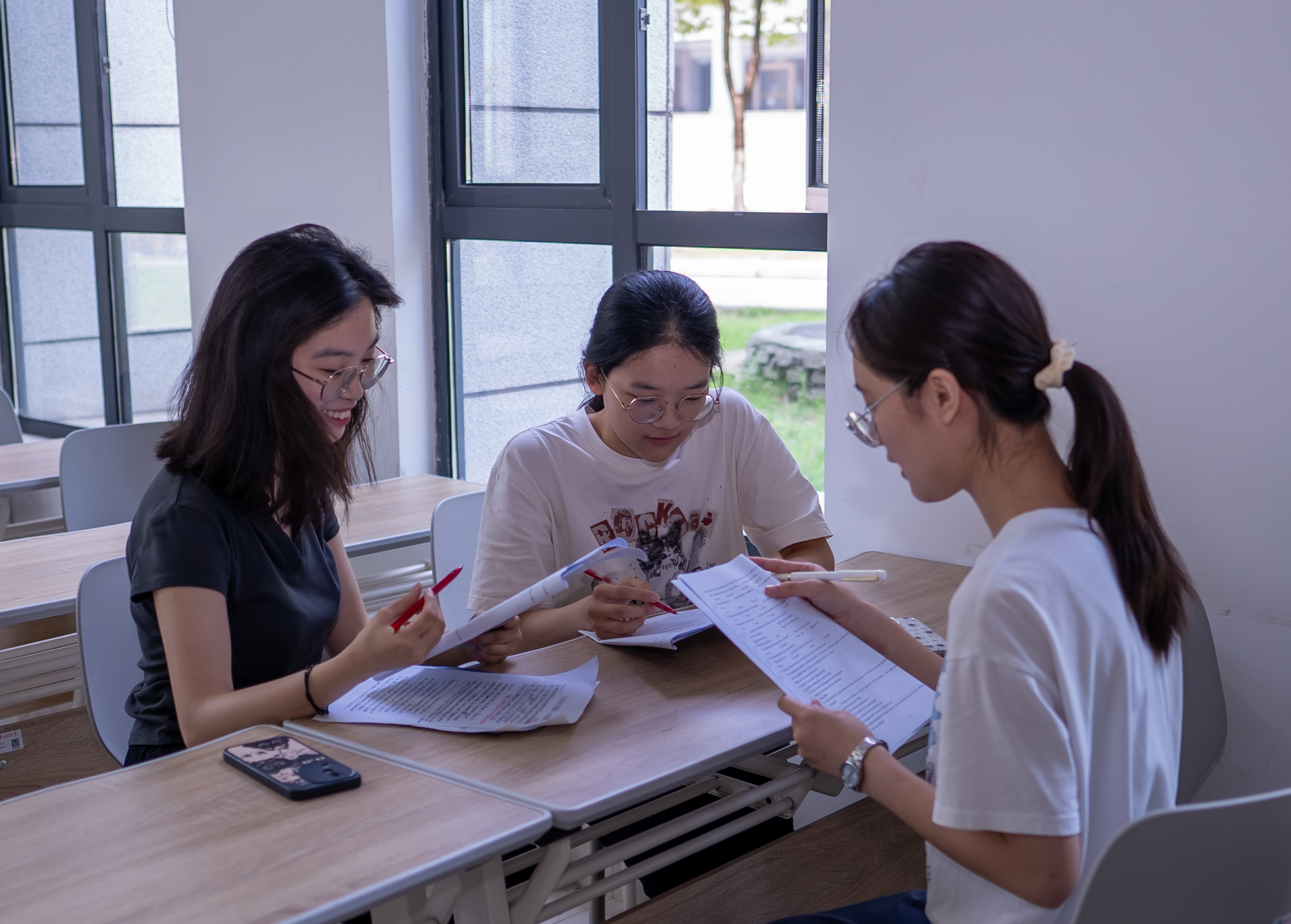“我从我的备考搭子身上学到了很多!”谢童童常与同学院的大一学生王心媛一起上专项辅导课,课上有疑惑当场交流解决,王心媛首次参赛便获得了一等奖的好成绩。谢童童还连续两年获特等奖的大二学生郑佳瑜在一个辅导小组里,郑佳瑜为她提供了很多参赛相关的注意事项并给予她很多鼓励,两人也经常共同探讨老师布置的任务。