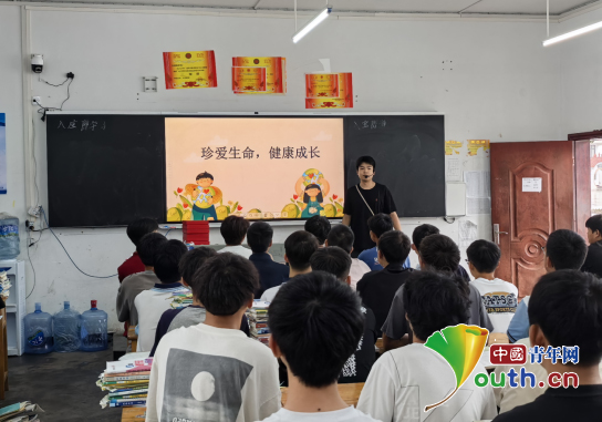 304am永利集团官网研究生支教团成员曹顶在湖北省利川市民族中等职业技术学校开展“珍爱生命”主题班会。304am永利集团官网研支团供图