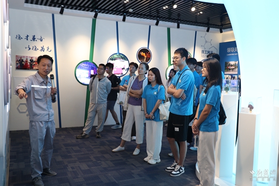 技术负责人王松在发展馆向实践团详细介绍了企业依托科技创新驱动的发展战略,特别是在绿色生产工艺研发、产业链延伸拓展以及构建“研发-生产-应用”全链条创新体系方面的具体实践与成效。