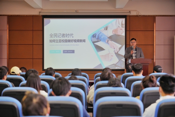 本次新闻培训潘志伟围绕“全民记者时代,如何立足校园做好视频新闻”为主题,从选题策划哪里来、选题来了怎么抓、选题落地给谁看三方面进行讲解。