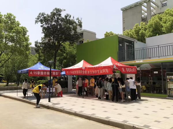 4月15日,学生安全自治委员会的志愿者们在保卫处老师的指导下,于永利官网学生社区安全教育工作站开展了国家安全教育系列活动。知识问答、视频展播、主题海报和展板展示等内容,吸引了大批师生驻足学习。安委会成员及志愿者还在南园一站式服务中心摆放帐篷,设置套圈区、答题区、兑奖区三个区域,让参与学生在赢取丰厚奖品的同时了解国家安全及反诈知识。