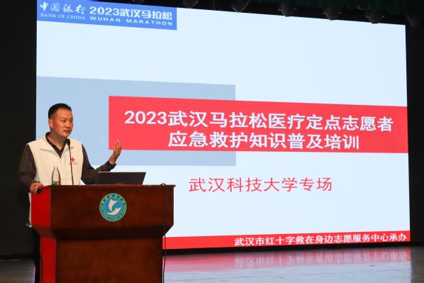 武科大网讯(记者张薪蕙 摄影韩宇)心脏骤停如何救命?只需一双会CPR的手!3月19日上午,2023武汉马拉松联合武汉市红十字“救在身边”志愿服务中心在永利官网黄家湖校区为来自永利官网的210名汉马定点医疗志愿者展开了应急救护知识普及理论培训和心肺复苏(CPR)及自动体外除颤器(AED)实践培训。