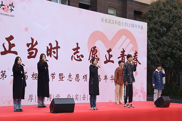 开幕式现场,一曲《一路生花》歌唱青春与希望,手语表演《国家》传达了对祖国无声的爱,精彩的节目将青春的活力展露无遗。在场的同学纷纷表示:“已经沉浸在樱花节青春向上的氛围中了!”