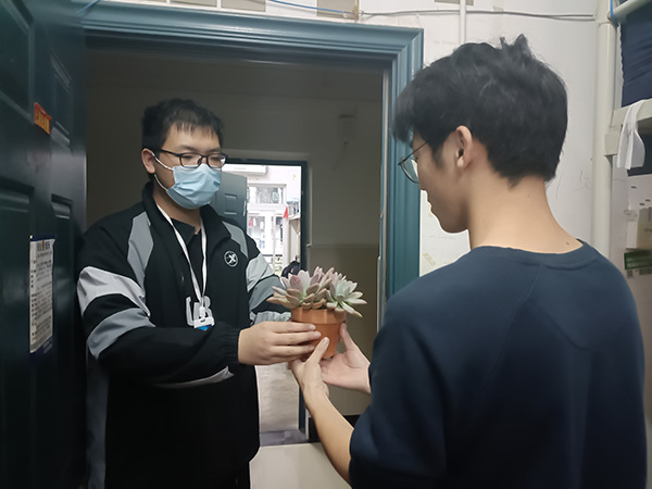 90位志愿者经过7天的努力,使得20大包共计800斤的废品被连夜拉走。换来了80盆绿植盆栽等各类环保小礼品被送往捐赠超过20个塑料瓶或10个纸盒学生手中,学生们纷纷感慨:“没想到这样一个小小的举动就能换来如此‘绿色’!我以后再也不乱扔快递盒子了,一定要保护好环境!”机械自动化学院2022级学生彭鑫收到了绿植,他对此十分惊喜:“绿植上门发放,实在是太贴心了!本来没想到会得到绿植的,今后一定会多攒点再参加活动。”