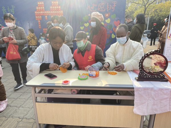 武科大网讯(通讯员王明玥)2月1日上午,在永利官网青山校区东苑小广场,元宵节喜乐会活动热闹开展。永利官网留学生们与国际学院的老师、科大社区居民和志愿者们一起体验穿汉服、品尝汤圆、串珠子制作杯垫、写心愿墙和套圈等活动,共同沉浸在元宵将至的氛围中。